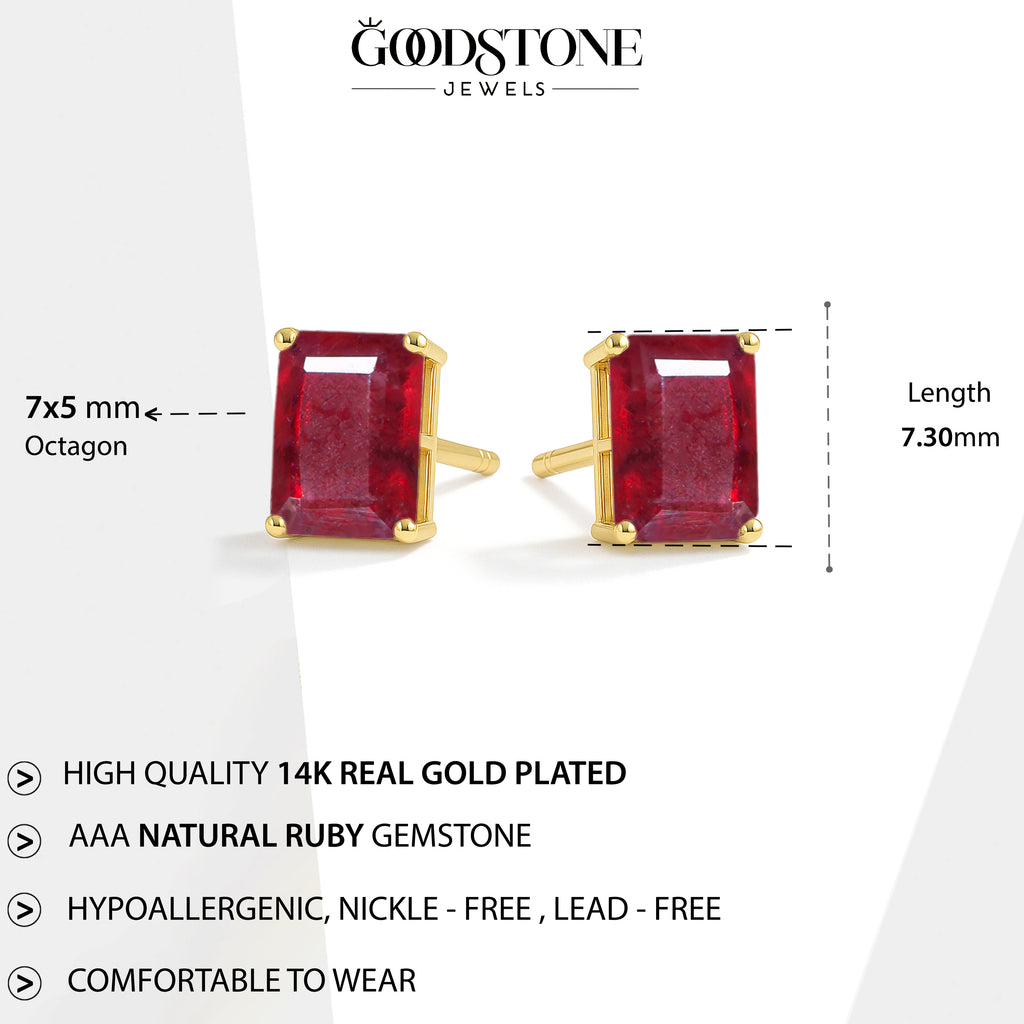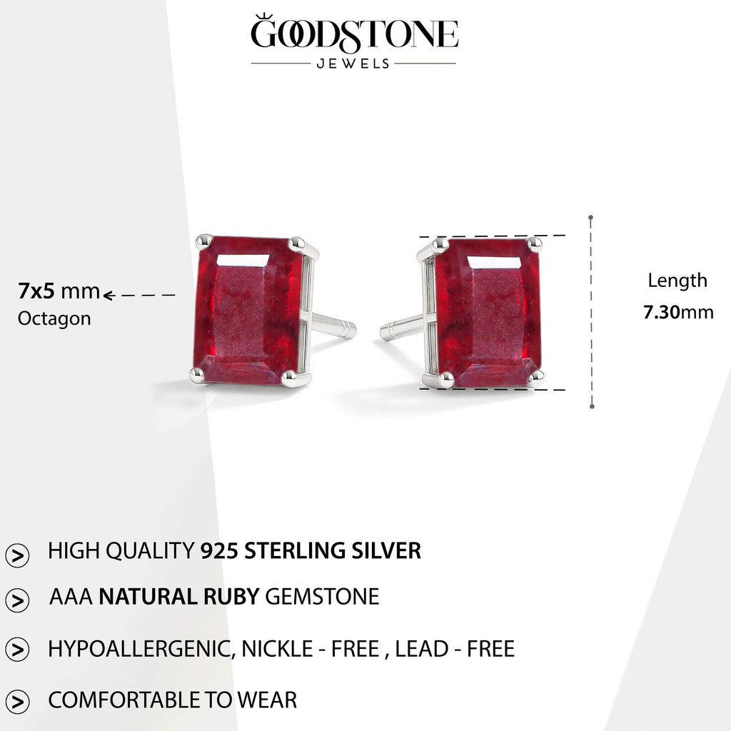 RubyExperience timeless elegance with these Ruby Octagon Stud Earrings, crafted in premium 925 sterling silver. Featuring a vibrant 7x5 mm ruby cut in a striking hexagon face, each stud offers a refined 0.75-carat brilliance. Lightweight at approximately 0.70 g, they provide comfortable all-day wear. Perfect for adding a touch of luxury to any look, these earrings blend classic beauty with modern sophistication. Ideal for gifting or personal style.