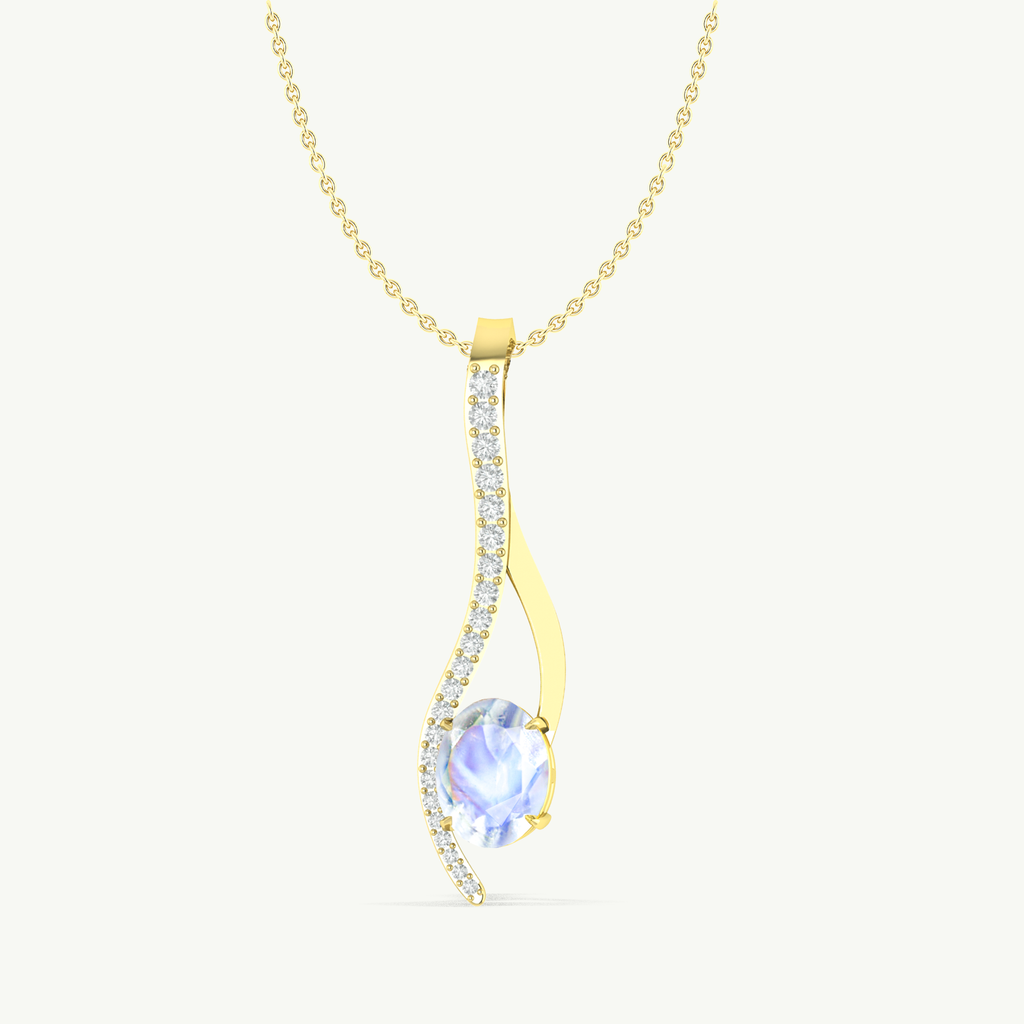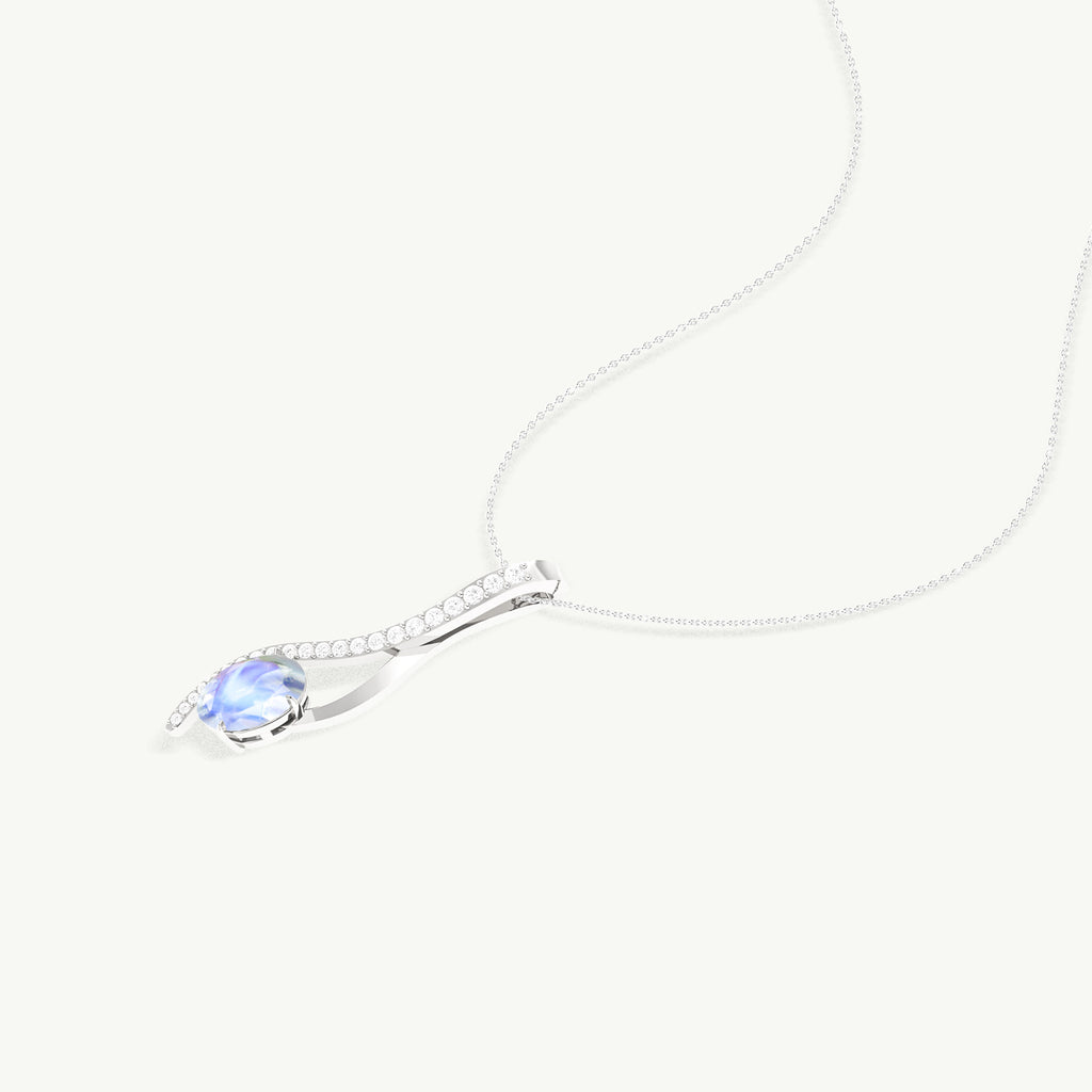 MoonstoneThis Moonstone Oval Swirl Pendant Necklace is crafted in genuine 925 Sterling Silver, featuring a single 9×7 mm oval moonstone weighing 1.4 carats. The pendant measures 36 × 9.2 mm with a graceful swirl design, adding a luminous and elegant touch. It hangs from a 16” cable chain with a 2” extender and secure lobster clasp. Weighing 2.9 grams, this necklace is perfect for everyday wear, special occasions, or gifting to someone special.