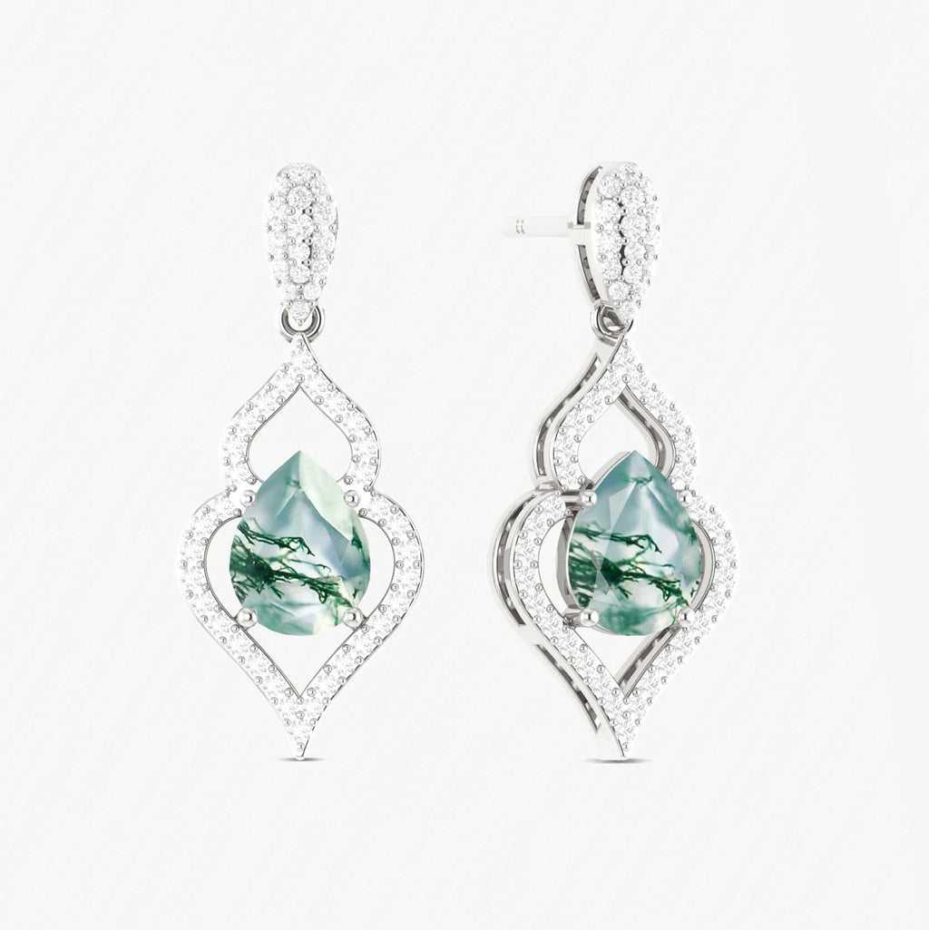 Moss AgateIntroducing the Pear Moss Agate Stud and Drop Earrings! This beautiful earring features pear of stunning Moss Agate . Wear it to add a touch of elegance and love to any outfit. Perfect for special occasions or everyday wear, this earring is sure to dazzle and delight.