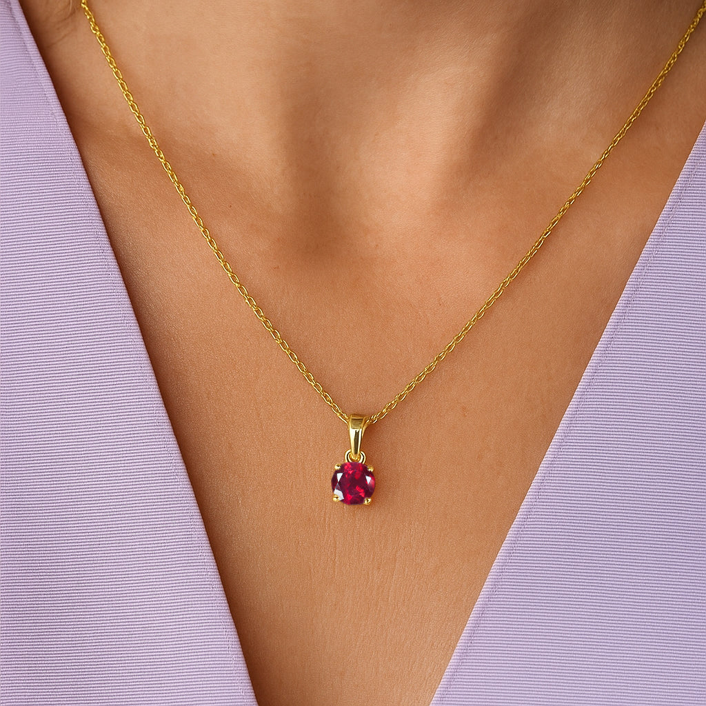 Add timeless elegance to your look with this Ruby Round Teardrop Pendant Necklace, crafted in high quality 925 sterling silver. The pendant features a faceted 7 mm round Ruby weighing 1.5 carat, showcasing its signature iridescent glow. Measuring 15.60×7.00 mm, it hangs delicately from a 16″ + 2″ adjustable cable chain for a perfect fit. With a lightweight 1.60 g design, this necklace brings a soft, luminous charm to any outfit ideal for both everyday wear and special occasions.