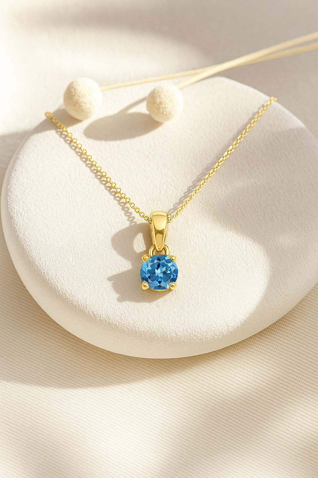 Blue Topaz Teardrop Pendant Necklace in 925 Sterling Silver 7mm 1.2ct