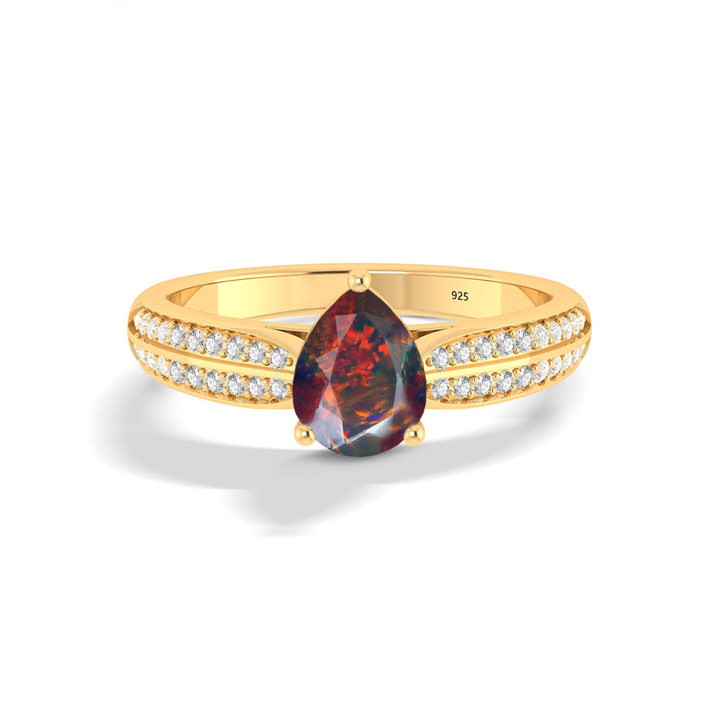 Black OpalNatural Black Opal Solitaire wth Accents Ring, Make a bold Solitaire wth Accents with this exquisite Natural Black Opal Solitaire wth Accents Ring, designed to capture attention and celebrate sophistication. Handcrafted in 925 sterling silver, this ring showcases a radiant 8x6mm oval-shaped black opal (1.0 carat) that shimmers with a captivating play of colors. Perfectly sized at 9.30mm and weighing approximately 4.30 grams, this ring combines beauty with comfort, ideal for both everyday wear and special occasions. Whether you're celebrating a wedding, engagement, anniversary, or simply want a stunning birthstone gift for her, this piece is a heartfelt symbol of elegance and love.