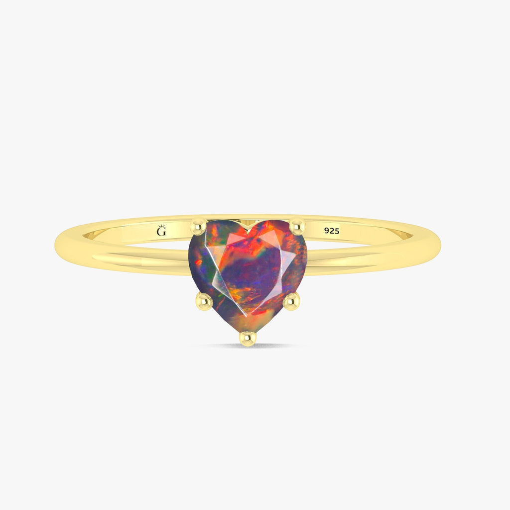 Black OpalElevate your jewelry collection with this stunning Natural Black Opal Heart Ring, masterfully crafted in 925 sterling silver. At the heart of this minimalist design is a captivating 6mm faceted black opal, shaped into a delicate heart and weighing approximately 0.8 carats. Its dazzling play of color makes each ring truly one-of-a-kind, reflecting both beauty and individuality. Designed with a sleek and stackable silhouette, this ring can be worn solo for understated elegance or layered with your favorite pieces for a personalized, fashion-forward look. Whether you're dressing up for an event or accenting your everyday outfit, this ring is the perfect finishing touch.