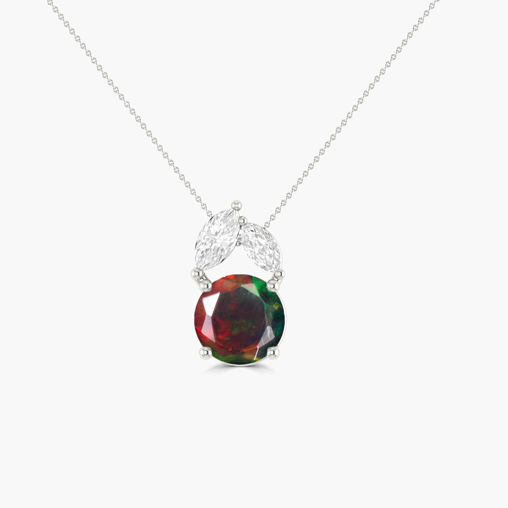 Black OpalGOODSTONE JEWELS Minimalist Chain Pendant Necklace, thoughtfully designed for women who appreciate understated elegance. This timeless piece features a natural 7mm round black opal set in 925 sterling silver, beautifully accented with a yellow gold-filled finish for a luxurious glow. The 1.2-carat opal gemstone showcases a mesmerizing play-of-color that shifts with every movement, making it a standout accessory in any jewelry collection. Whether you're dressing up for a special occasion or adding a refined touch to your daily outfit, this pendant offers unmatched versatility and charm. Crafted with both quality and comfort in mind, the necklace includes a 16-inch chain with a 2-inch extender, secured with a sturdy lobster clasp, and weighs just 1.70 grams—perfect for effortless, lightweight wear all day long.