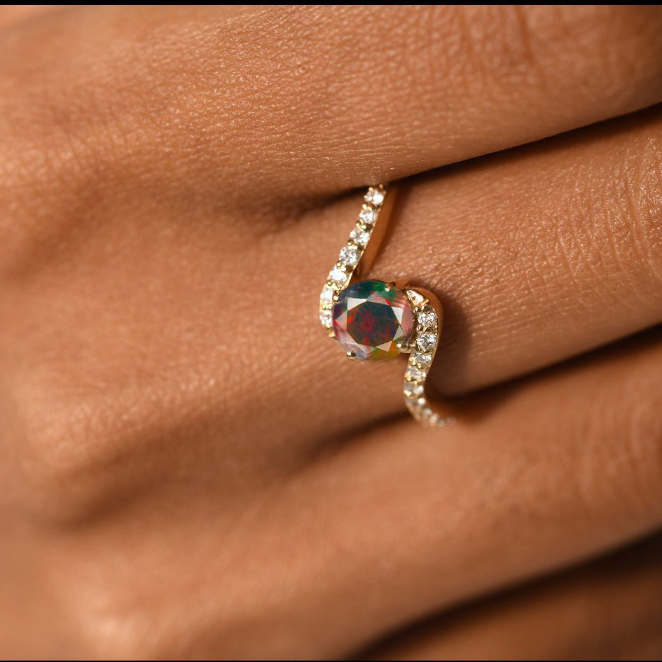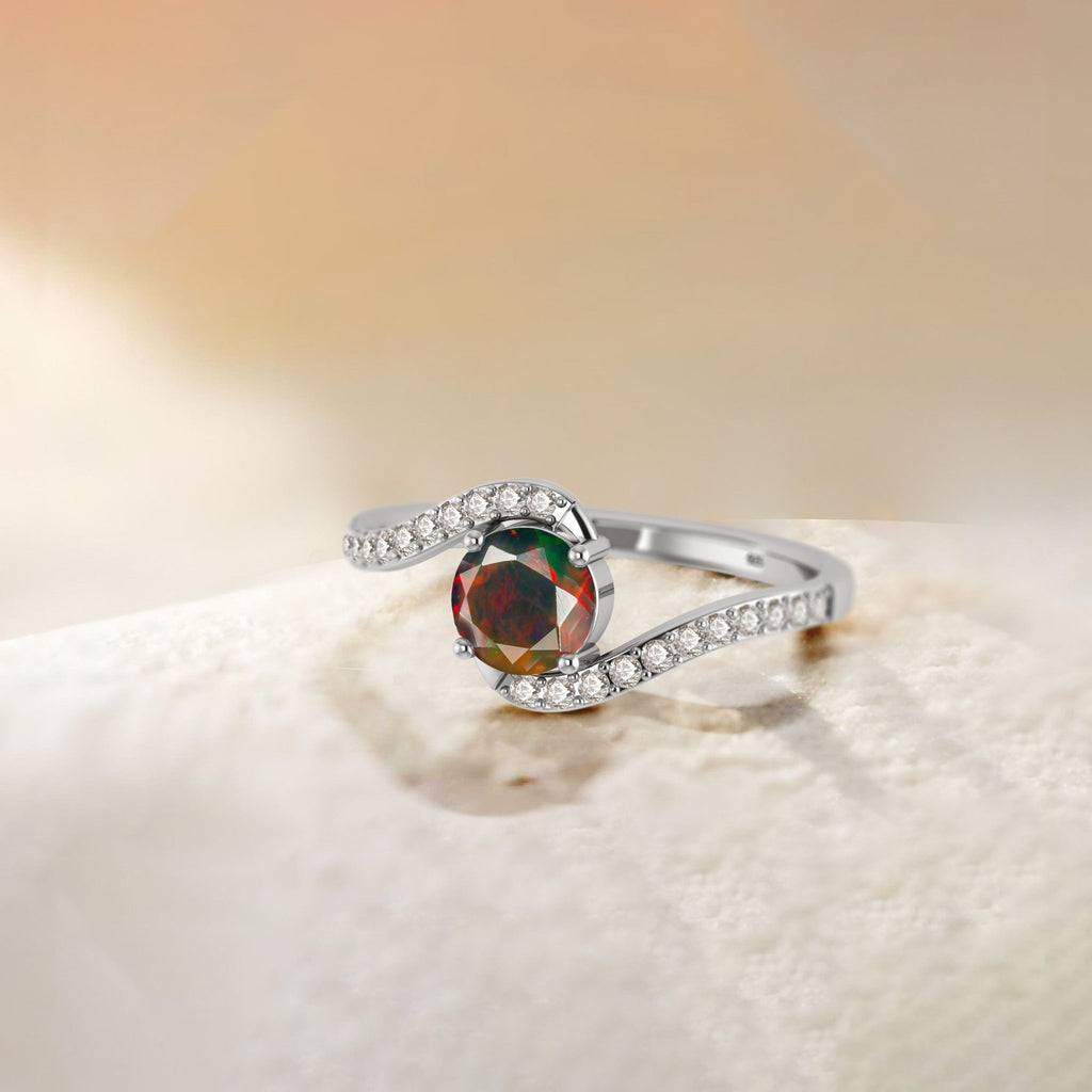 Black OpalAdd a touch of elegance to your jewelry collection with this exquisite Natural Black Opal 925 Sterling Silver Bypass Ring. Featuring a 6MM round-cut black opal weighing approximately 1.0 carat, this ring is a symbol of sophistication and grace. The gemstone is securely set in a sleek oval design and enhanced with a silver finish that brings out its rich, fiery hues. Handcrafted in premium 925 sterling silver, this ring offers both luxury and durability. Its size 9.65 MM fit and lightweight design (2.95 GM) ensure all-day comfort without compromising on bold style.