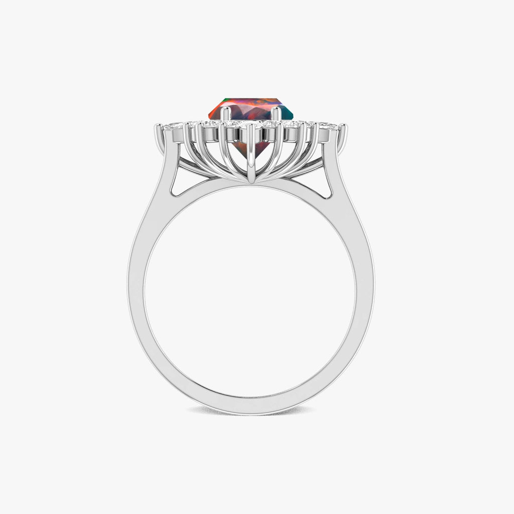 Black OpalNatural Black Opal 925 Sterling Silver Halo Ring featuring a vibrant 9x7 mm oval-cut natural black opal, this ring captivates with its fiery color play and unique charm, making it the perfect Halo piece for any special occasion or everyday luxury. Crafted with premium 925 sterling silver, the band is hypoallergenic and built to last, offering both durability and refined beauty. Whether you're celebrating an anniversary, birthday, wedding, or Valentine’s Day, this exquisite black opal ring makes an unforgettable gift for the woman you love. It's 1.0 carat weight and elegant design reflect both sentiment and style, making it a treasured keepsake she’ll cherish forever.