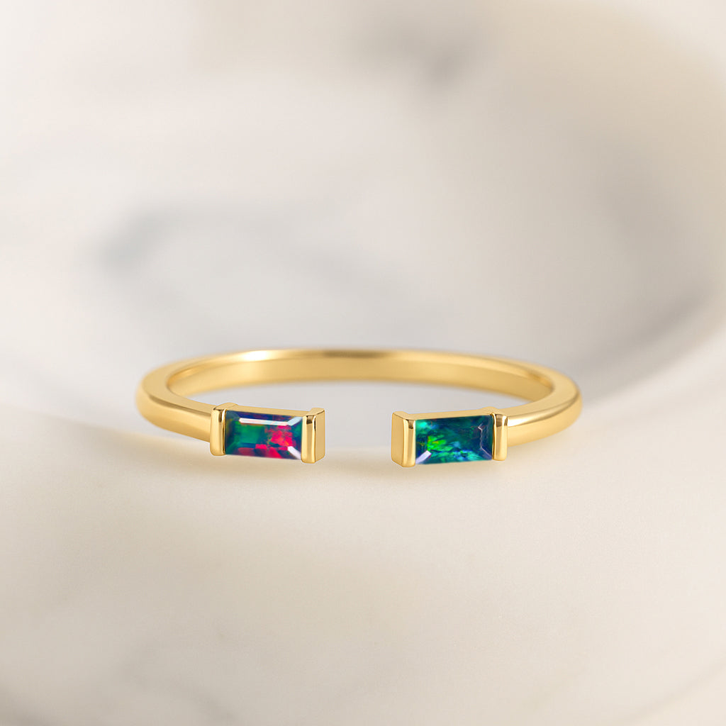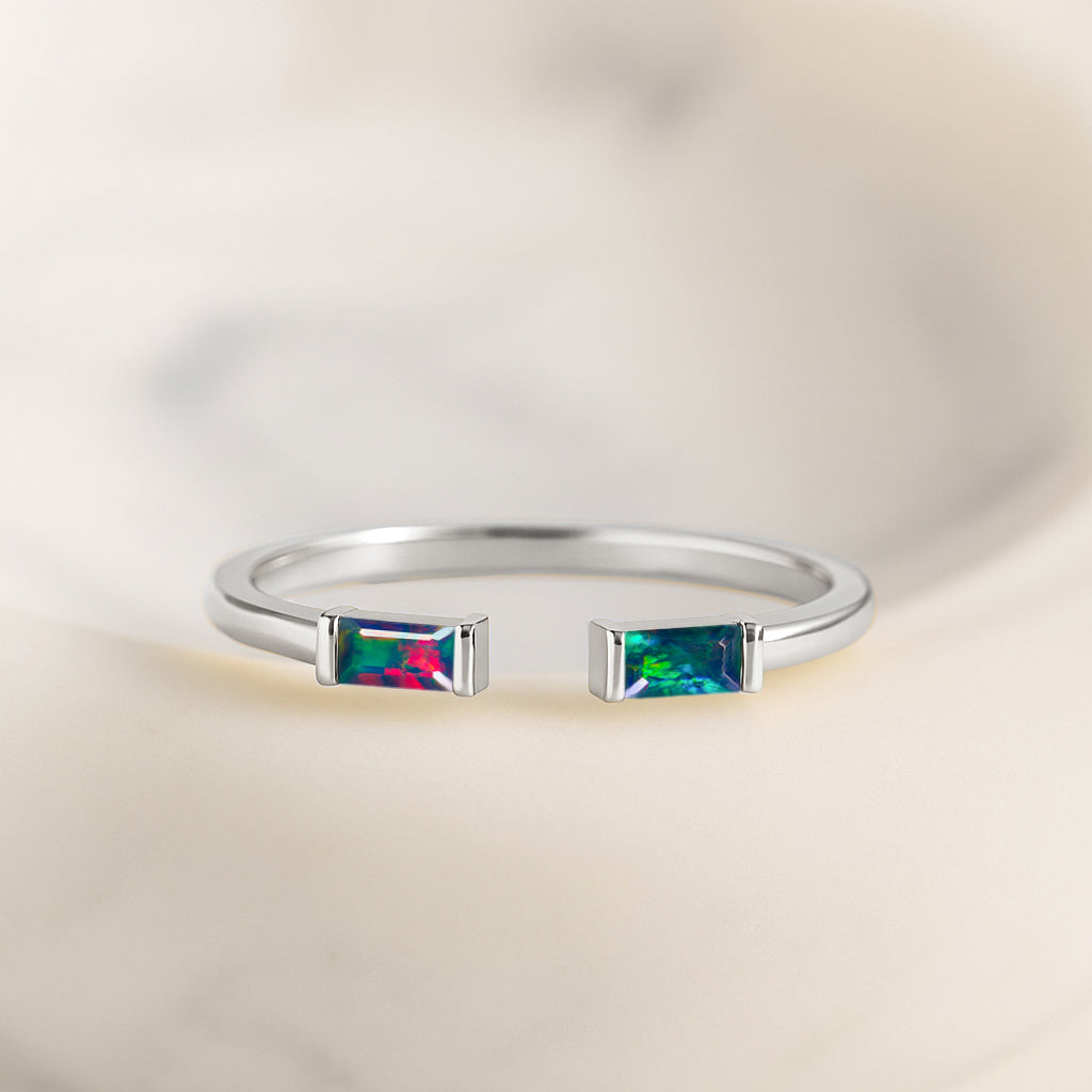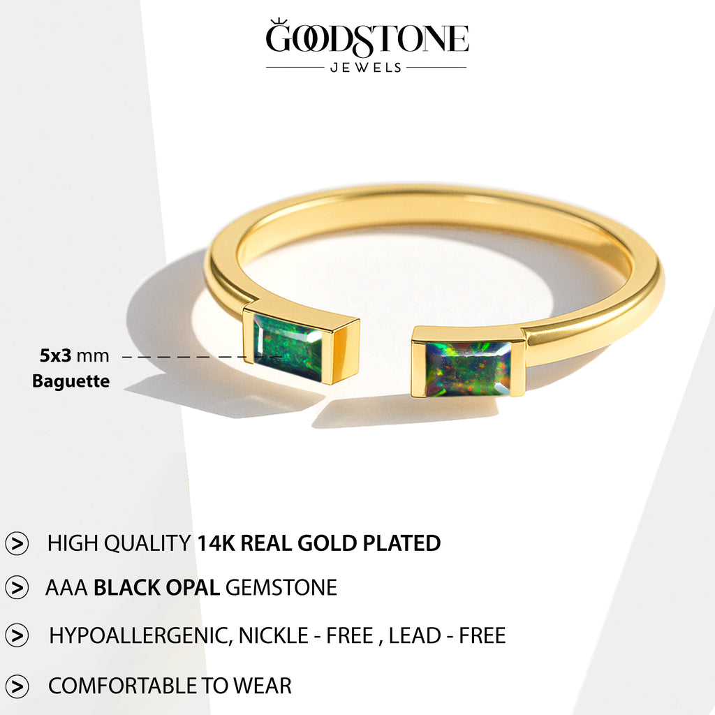 Black OpalElevate your everyday style with this elegant Baguette Stone Open Ring, crafted in high quality 925 sterling silver. The design features a natural black opal baguette stone measuring 5x2 mm, offering a vivid pop of red and a sleek modern silhouette. With a total gemstone weight of 0.50 carat and an approximate ring weight of 1.75 g, it delivers both comfort and luxury. The open-band style adds a contemporary touch, making it a perfect statement piece for any jewelry collection.