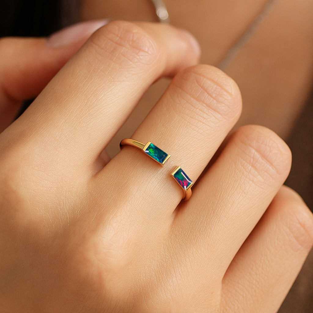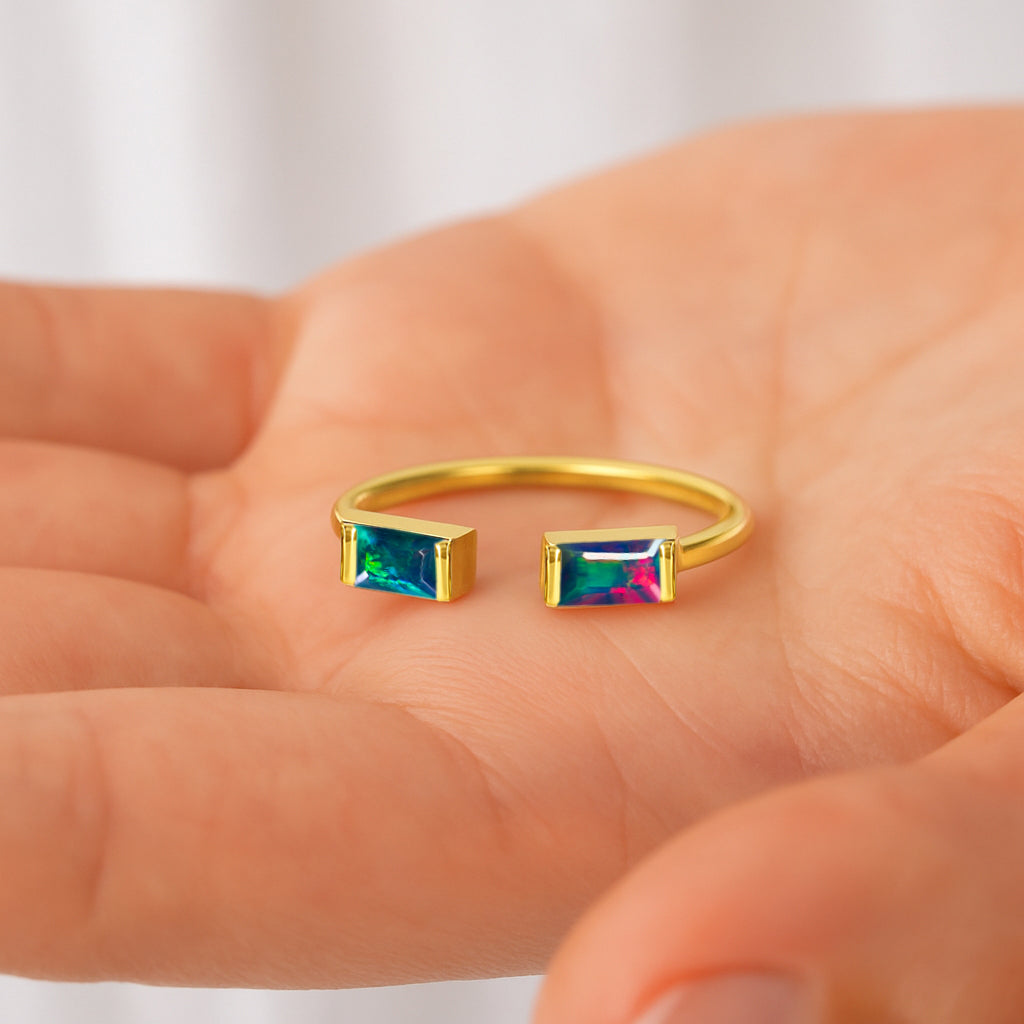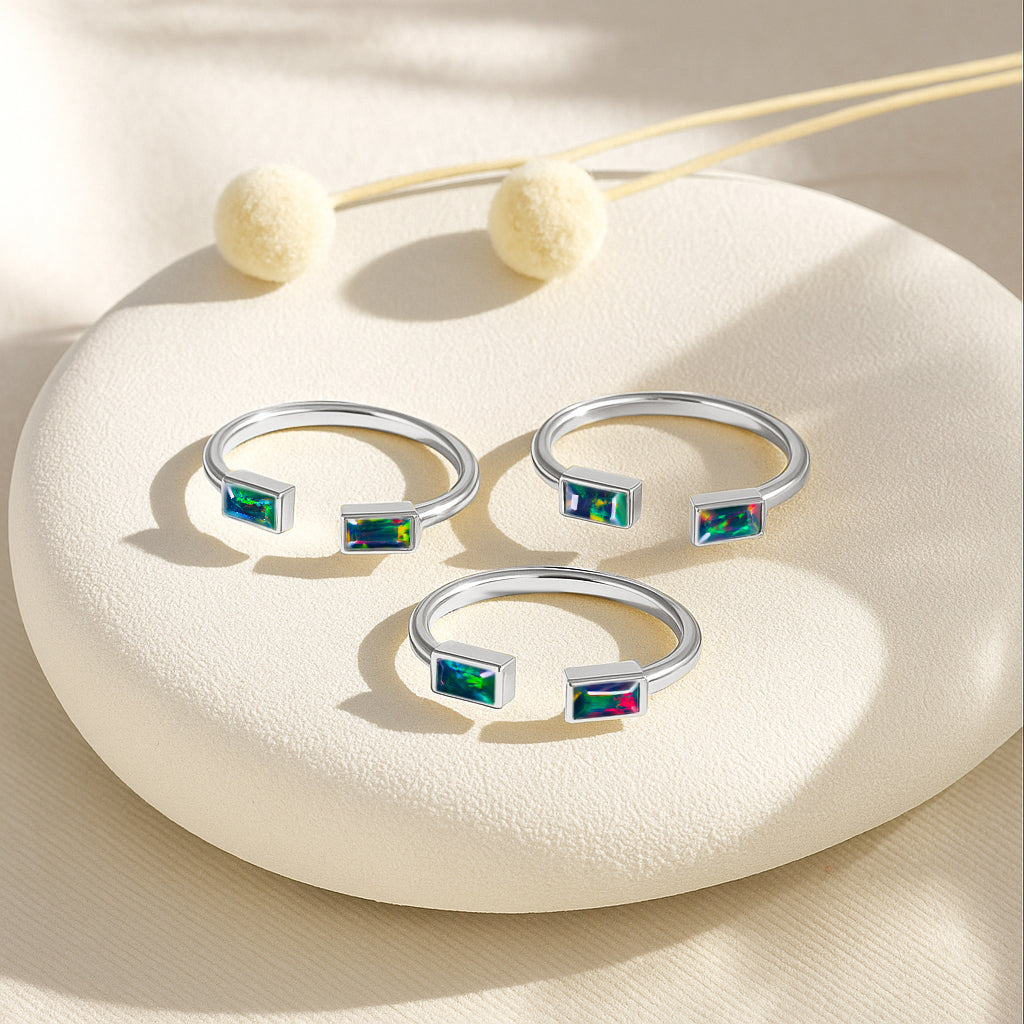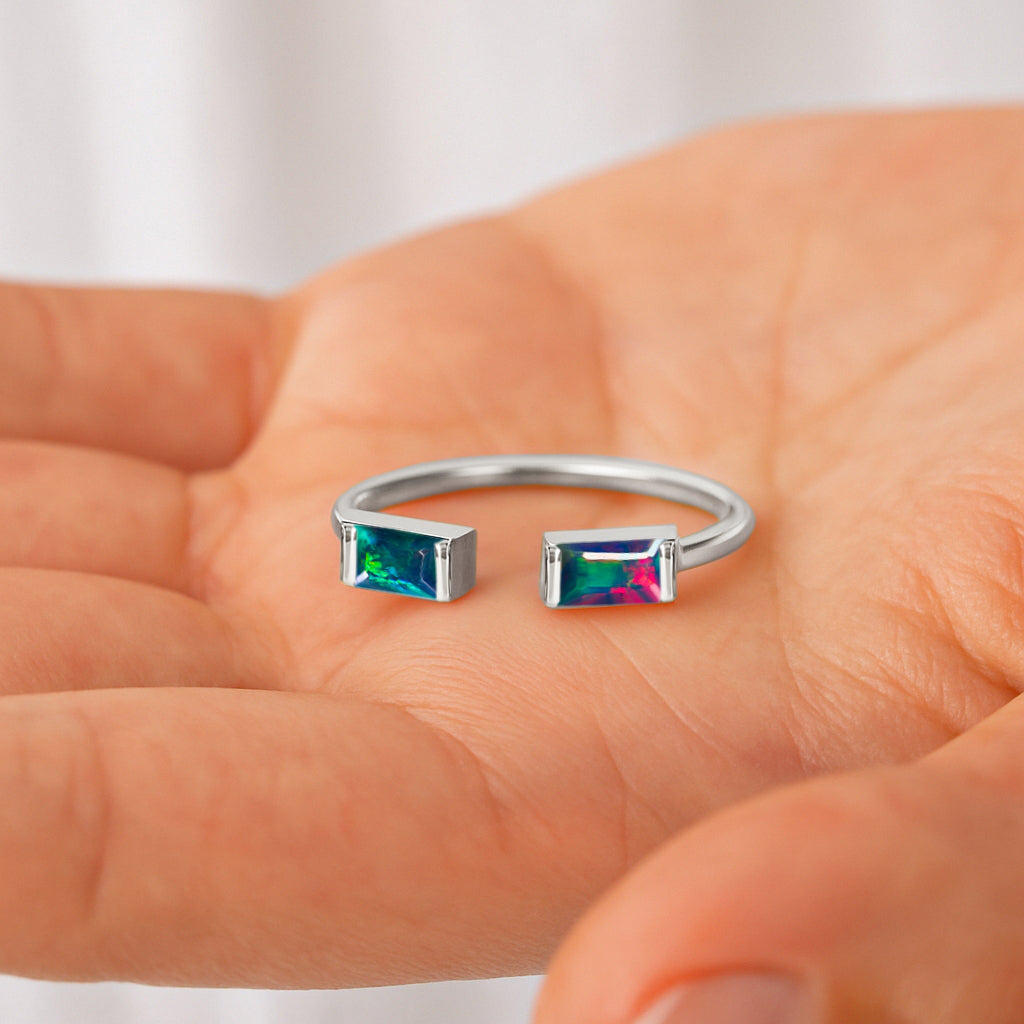 Black OpalElevate your everyday style with this elegant Baguette Stone Open Ring, crafted in high quality 925 sterling silver. The design features a natural black opal baguette stone measuring 5x2 mm, offering a vivid pop of red and a sleek modern silhouette. With a total gemstone weight of 0.50 carat and an approximate ring weight of 1.75 g, it delivers both comfort and luxury. The open-band style adds a contemporary touch, making it a perfect statement piece for any jewelry collection.