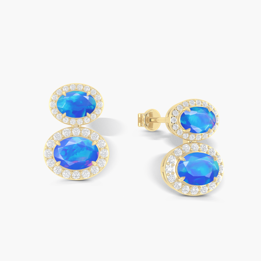 Blue OpalGOODSTONE JEWELS 925 Sterling Silver Dual Stone Stud Earrings : Elevate your jewelry collection with the exquisite craftsmanship of GOODSTONE JEWELS Dual Stone Stud Earrings, featuring a harmonious blend of natural opal. Made with genuine 925 sterling silver and enhanced with a yellow gold filled finish, these earrings offer a radiant, sophisticated look that never goes out of style. Designed with precision, each stud showcases oval-cut gemstones (7x5mm & 6x4mm) weighing a total of 2 carats, highlighting the vivid beauty of natural birthstones. Whether you're celebrating a birthday, anniversary, or simply showing appreciation, these earrings make a thoughtful gift for mothers, wives, girlfriends, or daughters.