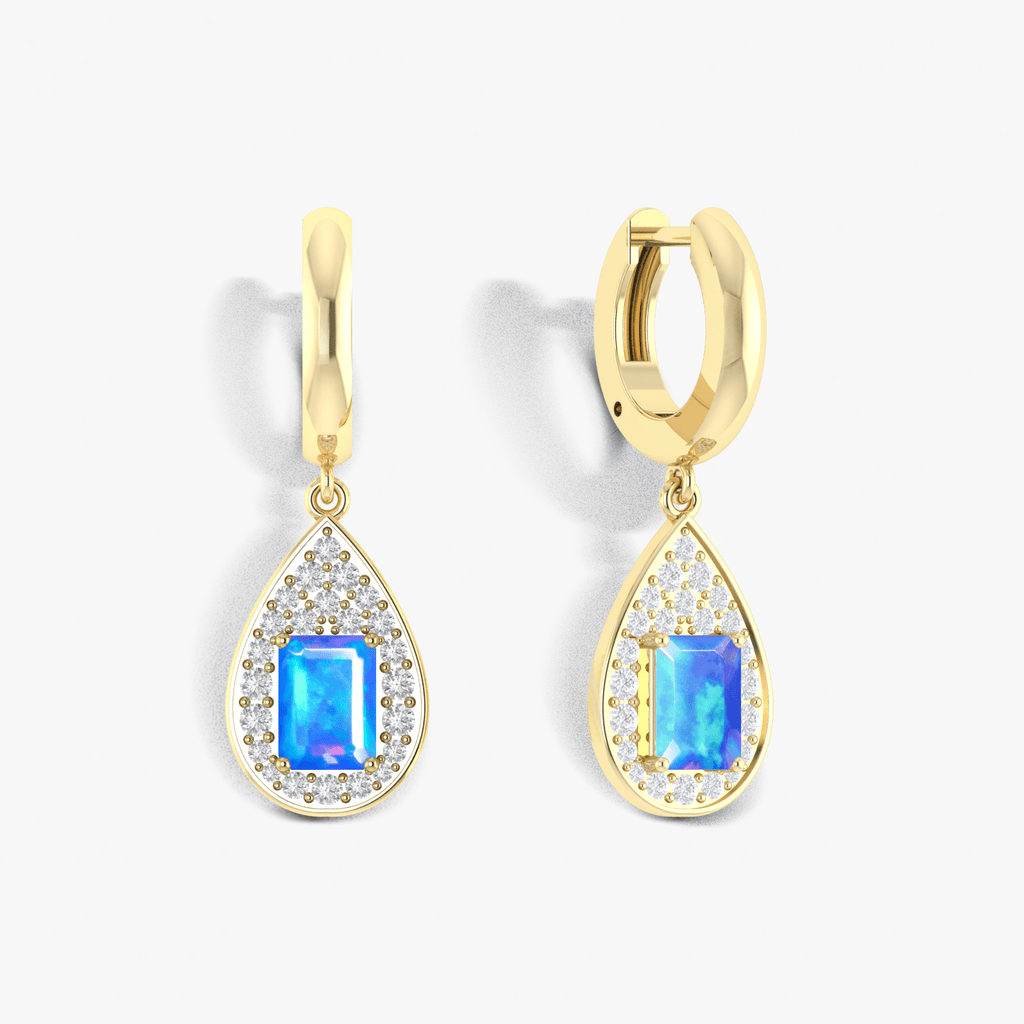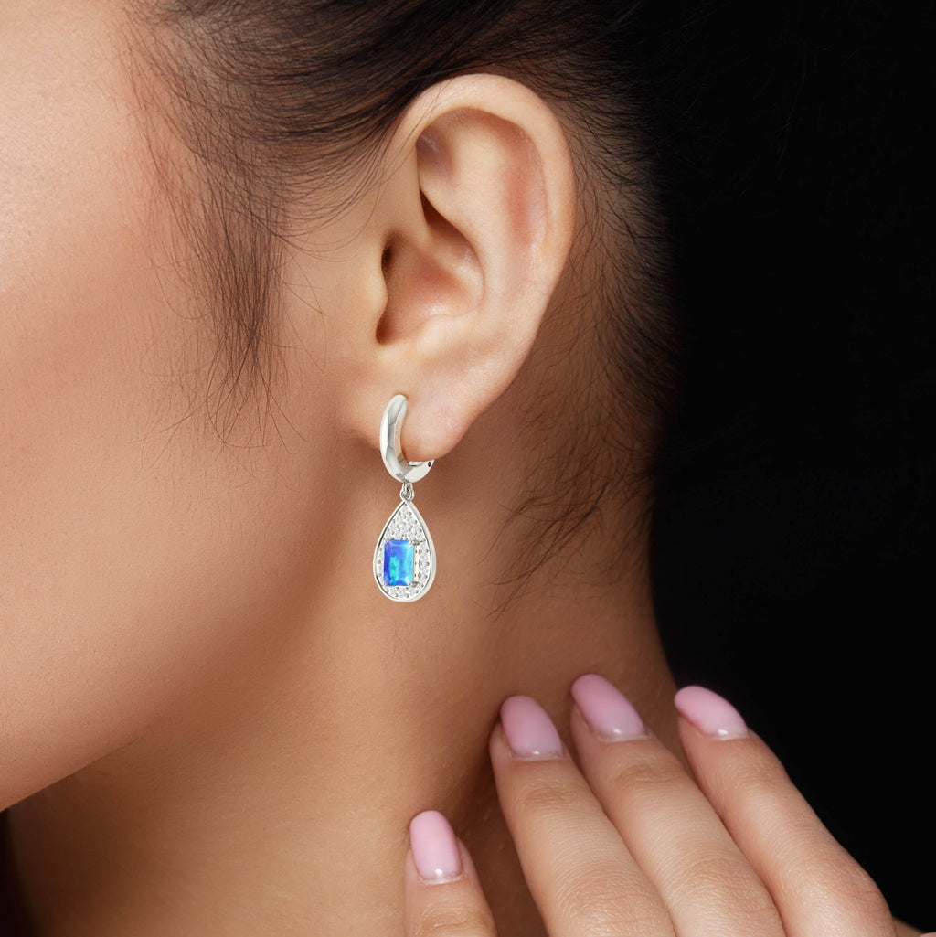 Blue OpalGOODSTONE JEWELS 925 Sterling Silver Hoop Tear Drop Earrings. Expertly crafted in 925 sterling silver, these exquisite earrings feature a unique blend of natural gemstones Opal for a look that’s as luxurious as it is meaningful. Each earring showcases a striking 7x5 mm octagon-cut gemstone, beautifully framed in a delicate teardrop hoop design. The carefully selected stones bring vibrant color and brilliance, creating a perfect balance of elegance and charm. Whether you're dressing up for a night out or adding flair to your daily look, these earrings promise to turn heads and spark compliments. Designed for both style and comfort, the earrings measure 33.50 x 11.10 mm and feature a secure, lightweight hoop construction (4.2 gm hoop, 1.2 gm face), making them ideal for all-day wear. Their thoughtful design and high-quality craftsmanship make them an unforgettable gift for birthdays, anniversaries, or special occasions perfect for mothers, wives, girlfriends, or yourself.