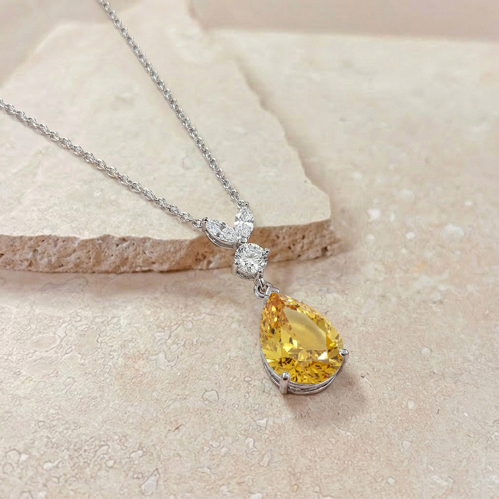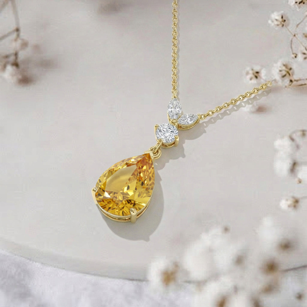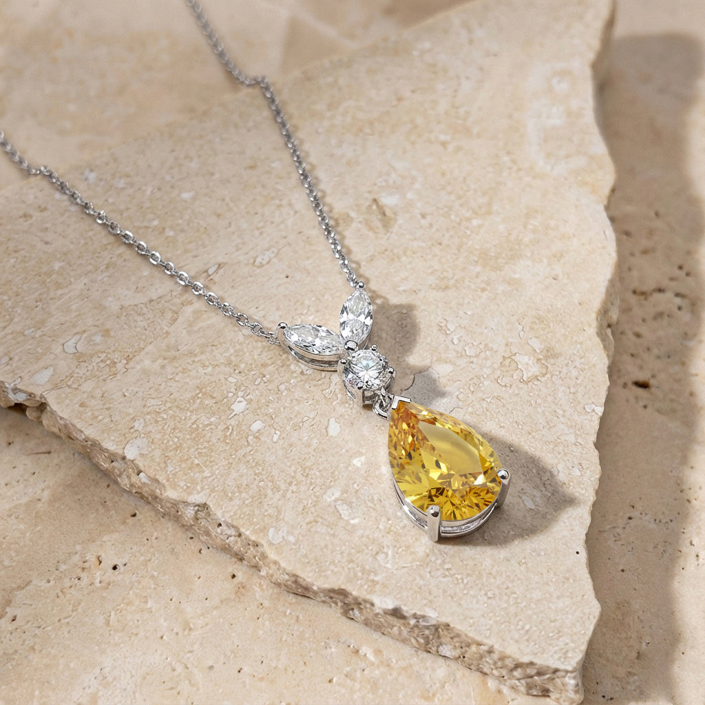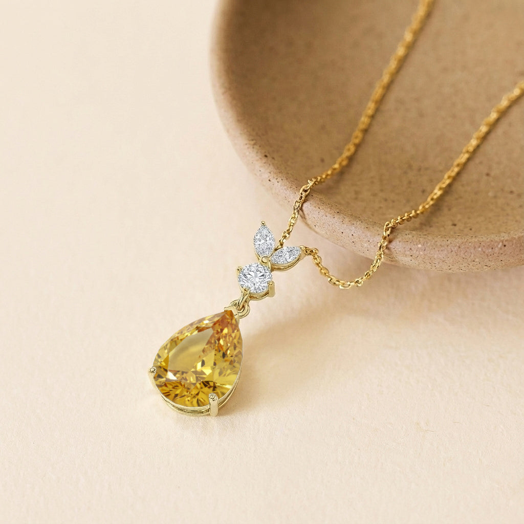 This Natural Citrine Pear Teardrop Pendant Necklace is crafted in 925 sterling silver and features a 1.70 CT faceted pear-shaped Citrine (10x7 mm). The pendant measures 21.06 x 7.31 mm and weighs approximately 1.70 g. It comes with a 16” + 2” adjustable sterling silver cable chain and a secure lobster clasp. A warm golden gemstone necklace perfect for everyday elegance or special occasions.