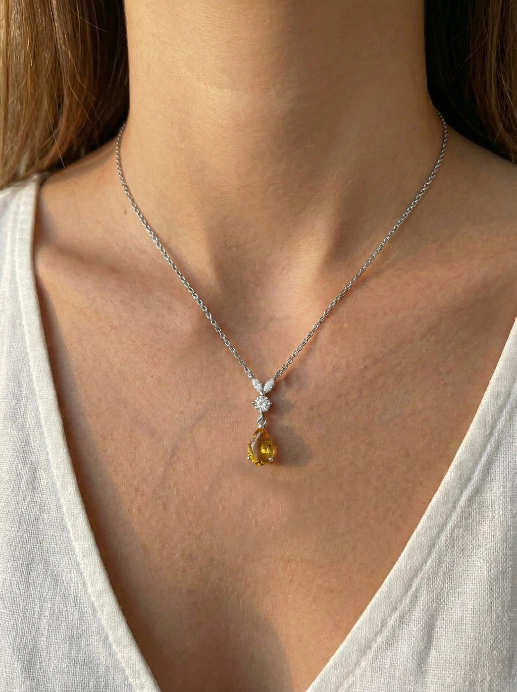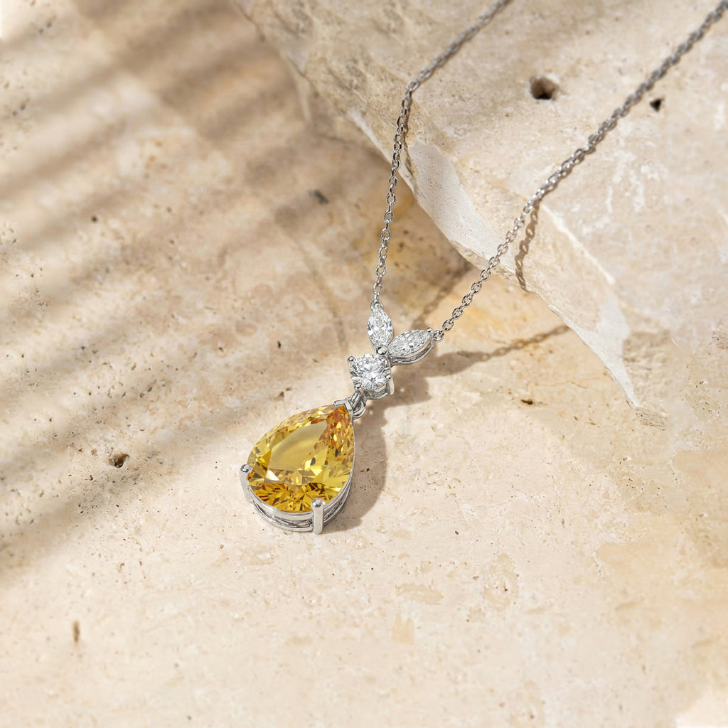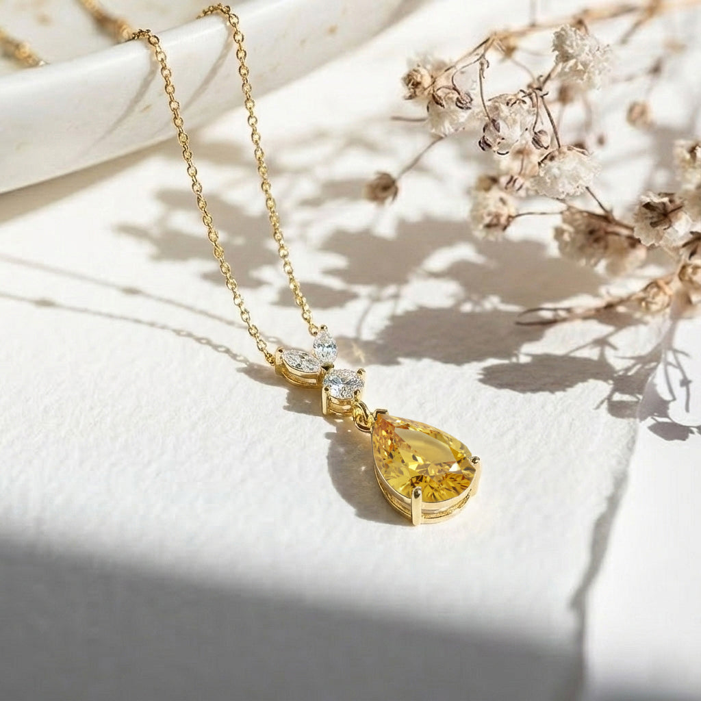 This Natural Citrine Pear Teardrop Pendant Necklace is crafted in 925 sterling silver and features a 1.70 CT faceted pear-shaped Citrine (10x7 mm). The pendant measures 21.06 x 7.31 mm and weighs approximately 1.70 g. It comes with a 16” + 2” adjustable sterling silver cable chain and a secure lobster clasp. A warm golden gemstone necklace perfect for everyday elegance or special occasions.