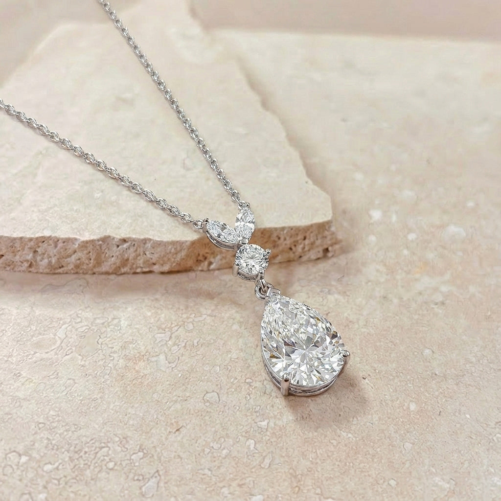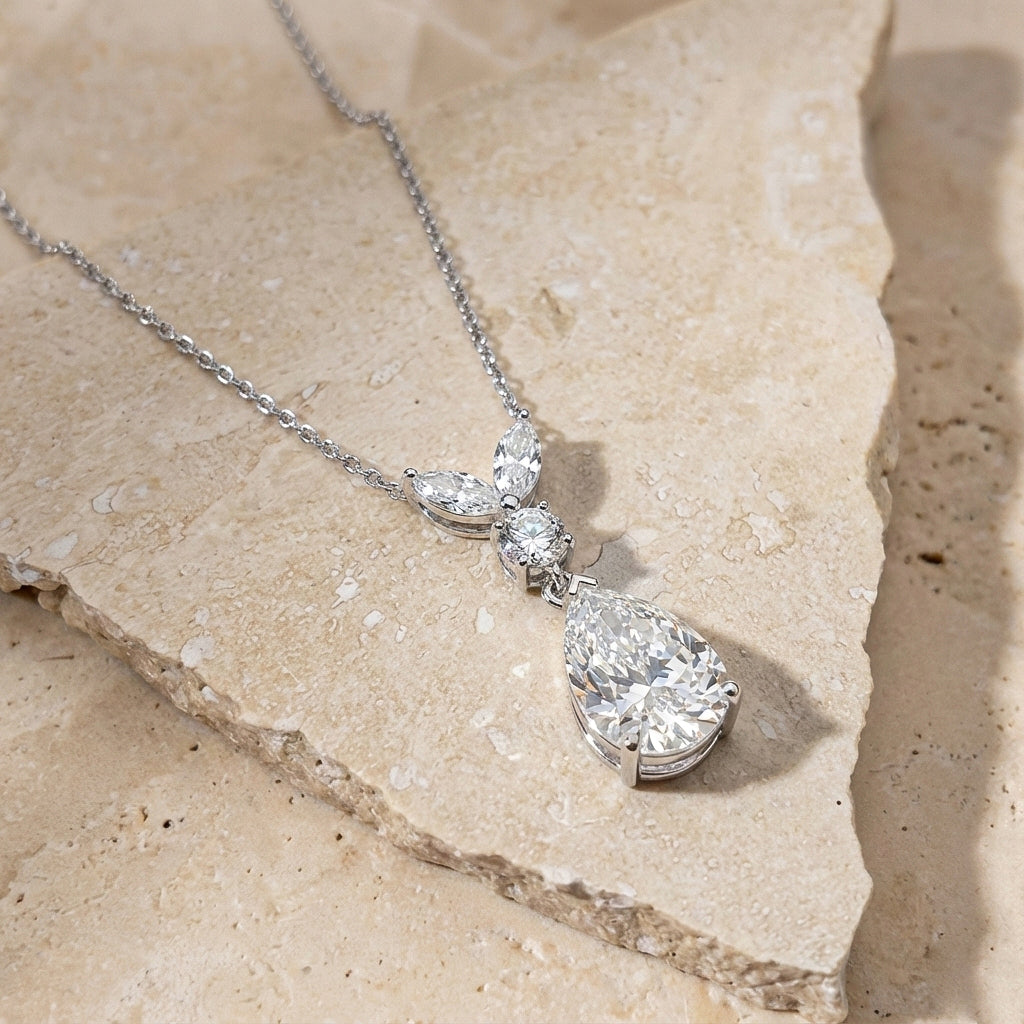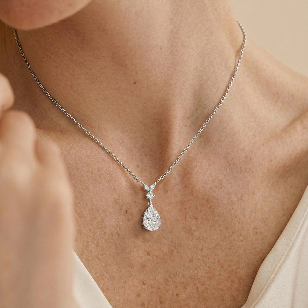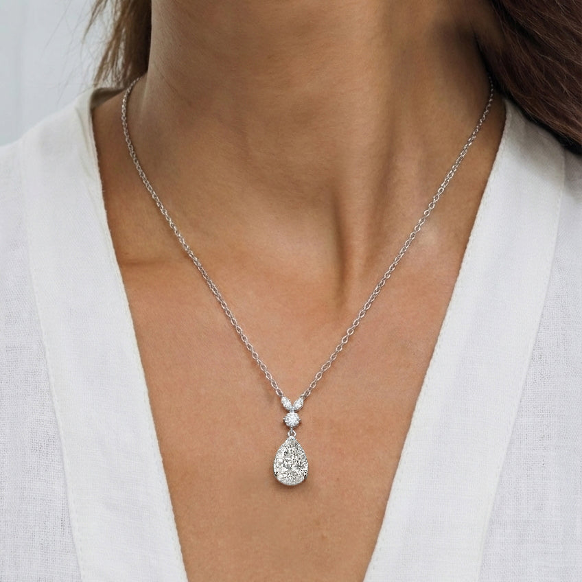 This Cubic Zirconia Pear Teardrop Pendant Necklace is crafted in 925 sterling silver and features a 1.70 CT faceted pear-shaped Cubic Zirconia (10x7 mm). The pendant measures 21.06 x 7.31 mm and weighs approximately 1.70 g. It comes with a 16” + 2” adjustable sterling silver cable chain and a secure lobster clasp. A sparkling, elegant necklace perfect for everyday wear or special occasions.