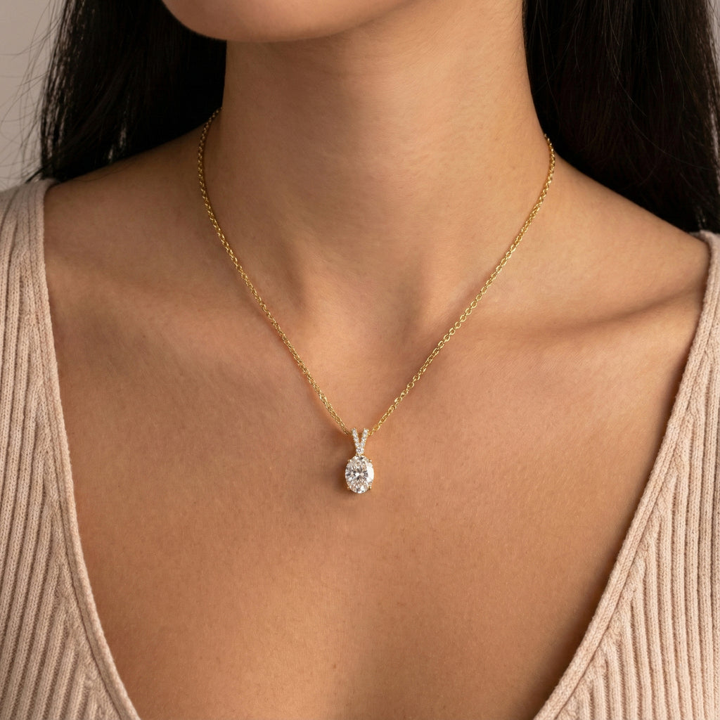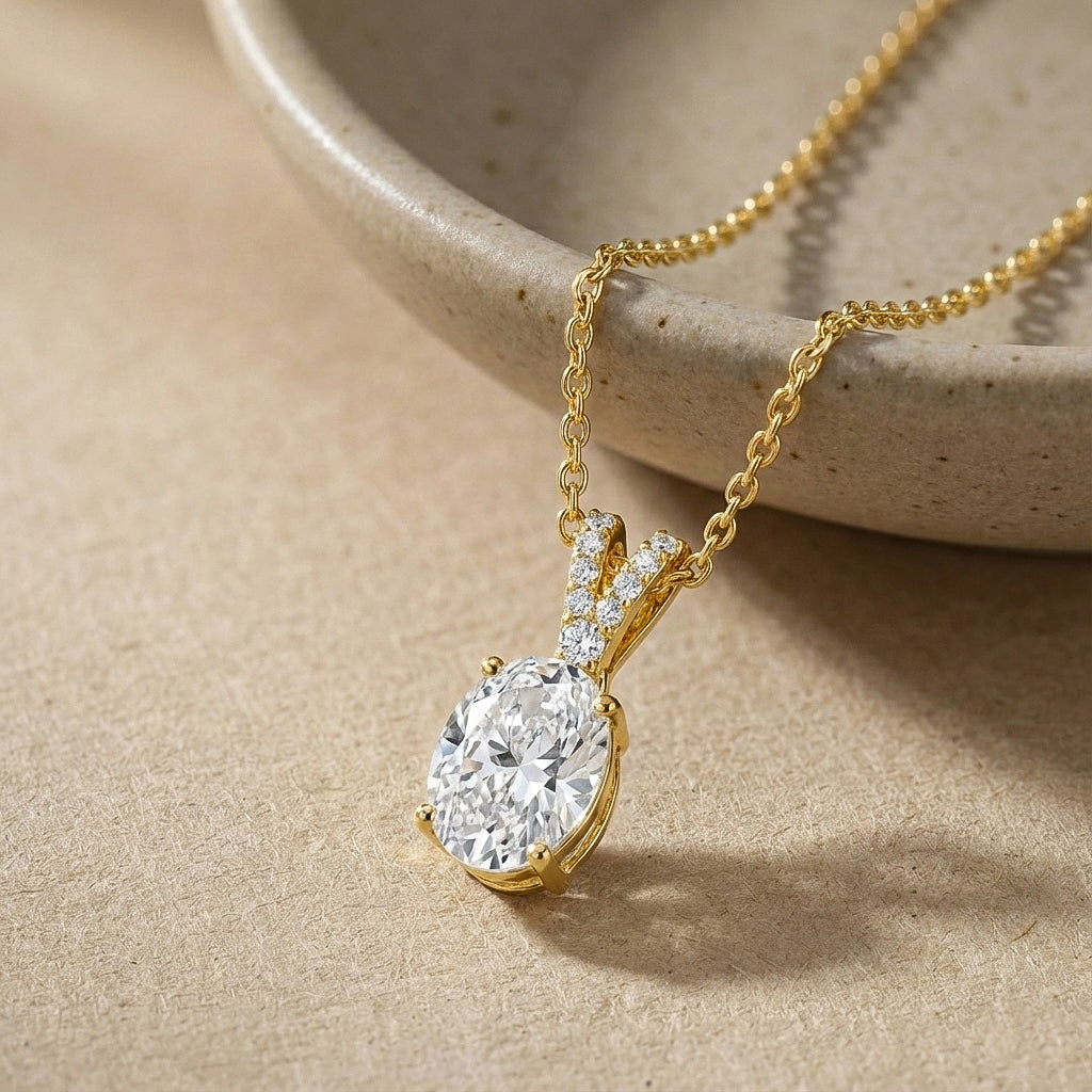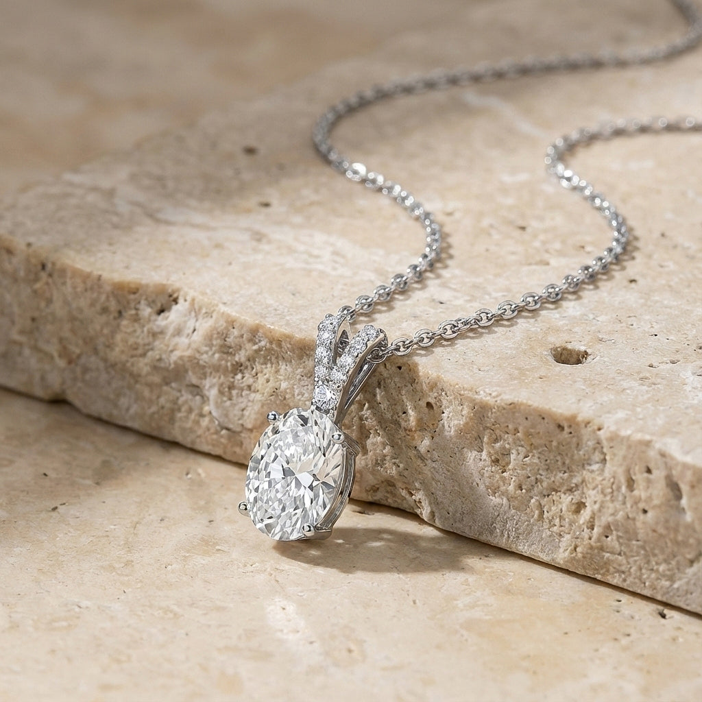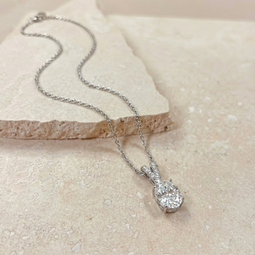 Cubic Zirconia Solitaire Pendant Necklace in 925 Sterling Silver features a brilliant 1.2ct oval-cut cubic zirconia (8x6mm) with exceptional faceted sparkle. Crafted in a timeless solitaire setting, the pendant measures 15.81 x 6.84mm and hangs from a 16” + 2” adjustable cable chain secured with a lobster clasp. Made from premium sterling silver, this elegant CZ necklace delivers a diamond-like look, lasting shine, and everyday comfort—perfect for gifting or adding classic sophistication to any outfit.