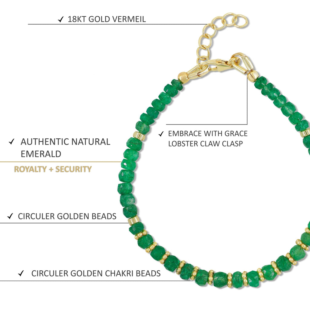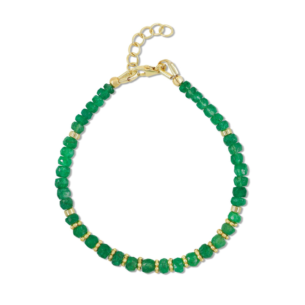 EmeraldFeaturing genuine Emerald beads in a timeless rondelle shape, this bracelet combines vibrant colors with spiritual beauty. Handcrafted with care using Yellow Gold-Filled and 925 Sterling Silver components, this bracelet is made to be as durable as it is beautiful. Whether you're looking for a meaningful gift or a new favorite accessory, this piece is perfect for birthdays, anniversaries, holidays, or simply to show appreciation. Its delicate appearance pairs effortlessly with any outfit—ideal for everyday elegance or special occasions.