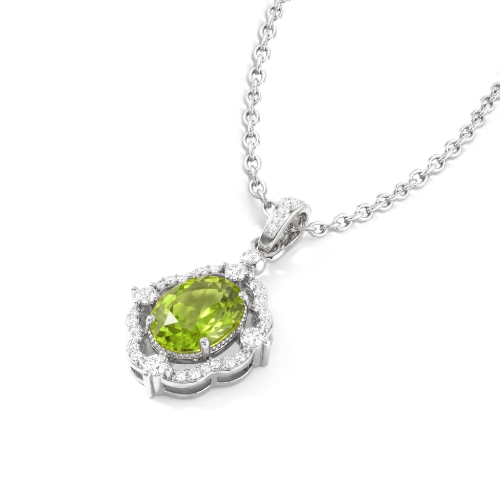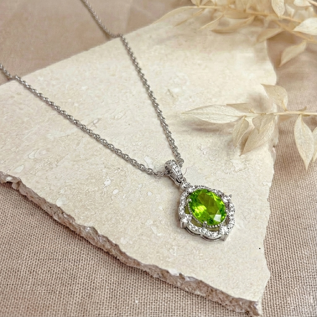 Bring a fresh, vibrant touch to your jewelry collection with our Natural Peridot Oval Halo Pendant Necklace in 925 sterling silver. Featuring a 1.2ct faceted peridot (8x6mm) surrounded by sparkling CZ stones, this 25x12mm pendant hangs on a 16” + 2” adjustable cable chain. Lightweight at approximately 3.5g, it’s perfect for daily wear or special occasions. A timeless, handcrafted piece that highlights natural beauty and American craftsmanship—ideal for gifting or adding a lively, sophisticated accent to any outfit.