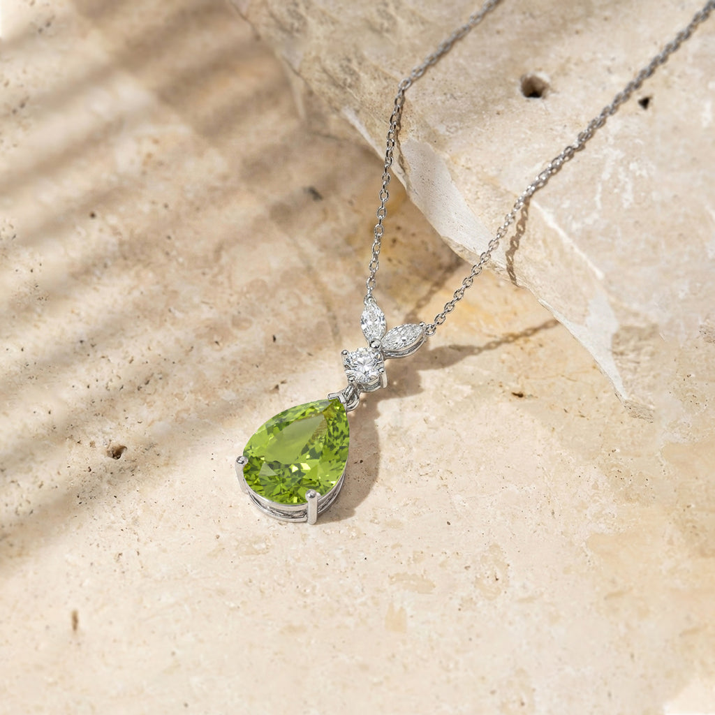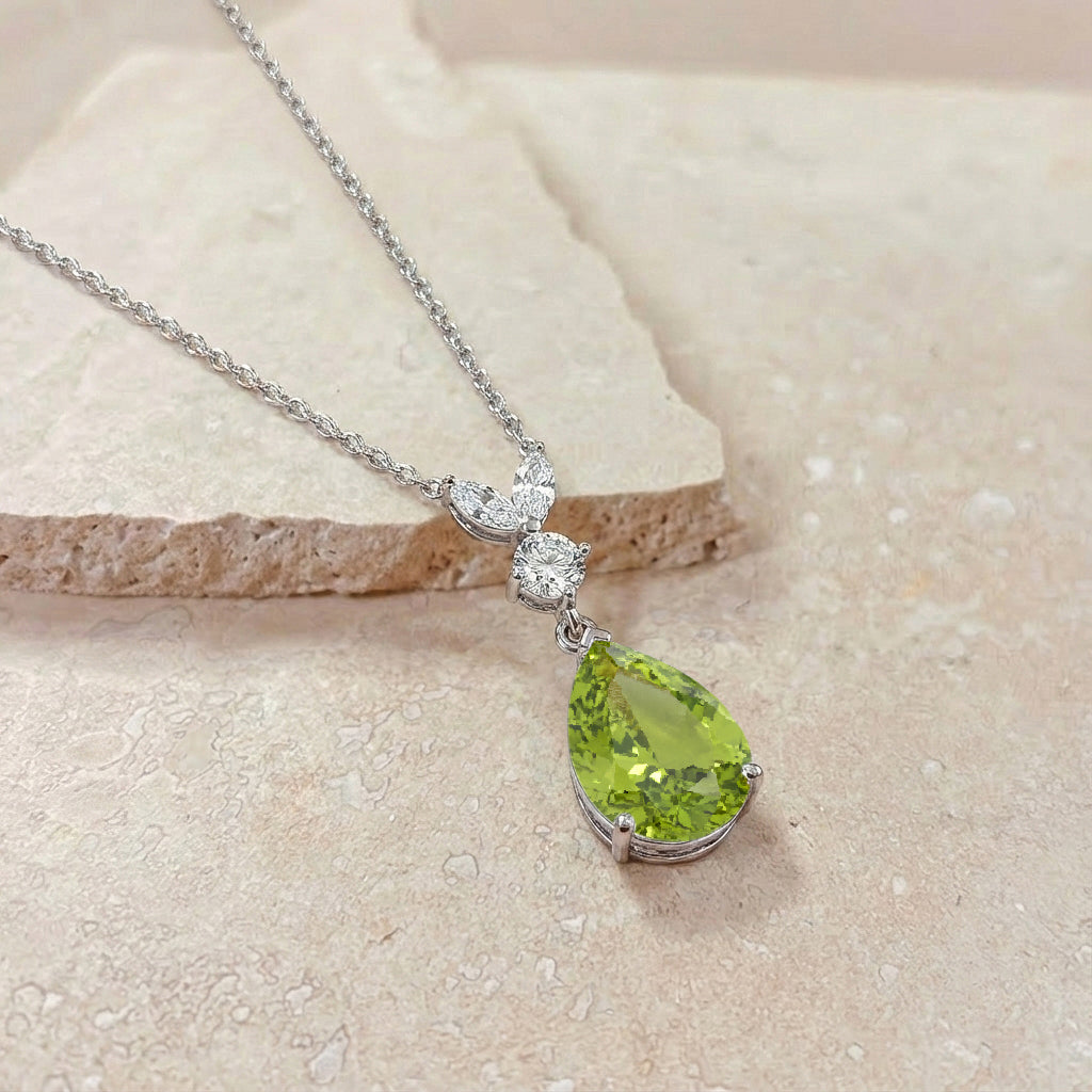 This Natural Peridot Pear Teardrop Pendant Necklace is crafted in 925 sterling silver and features a 1.70 ct faceted pear-shaped Peridot (10x7 mm). The pendant measures 21.06 x 7.31 mm and weighs approximately 1.70 g. It comes with a 16” + 2” adjustable sterling silver cable chain and a secure lobster clasp. A vibrant green gemstone necklace perfect for everyday elegance or special occasions.