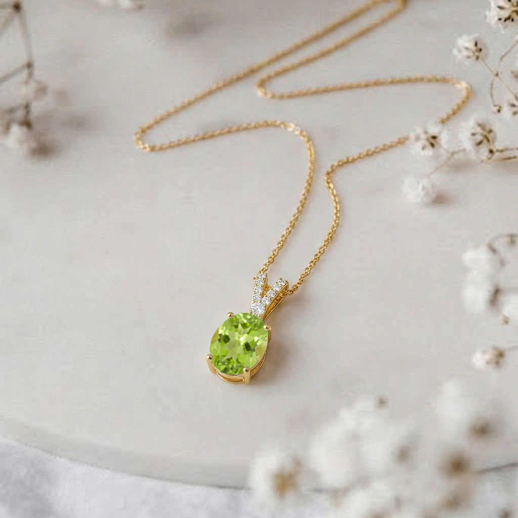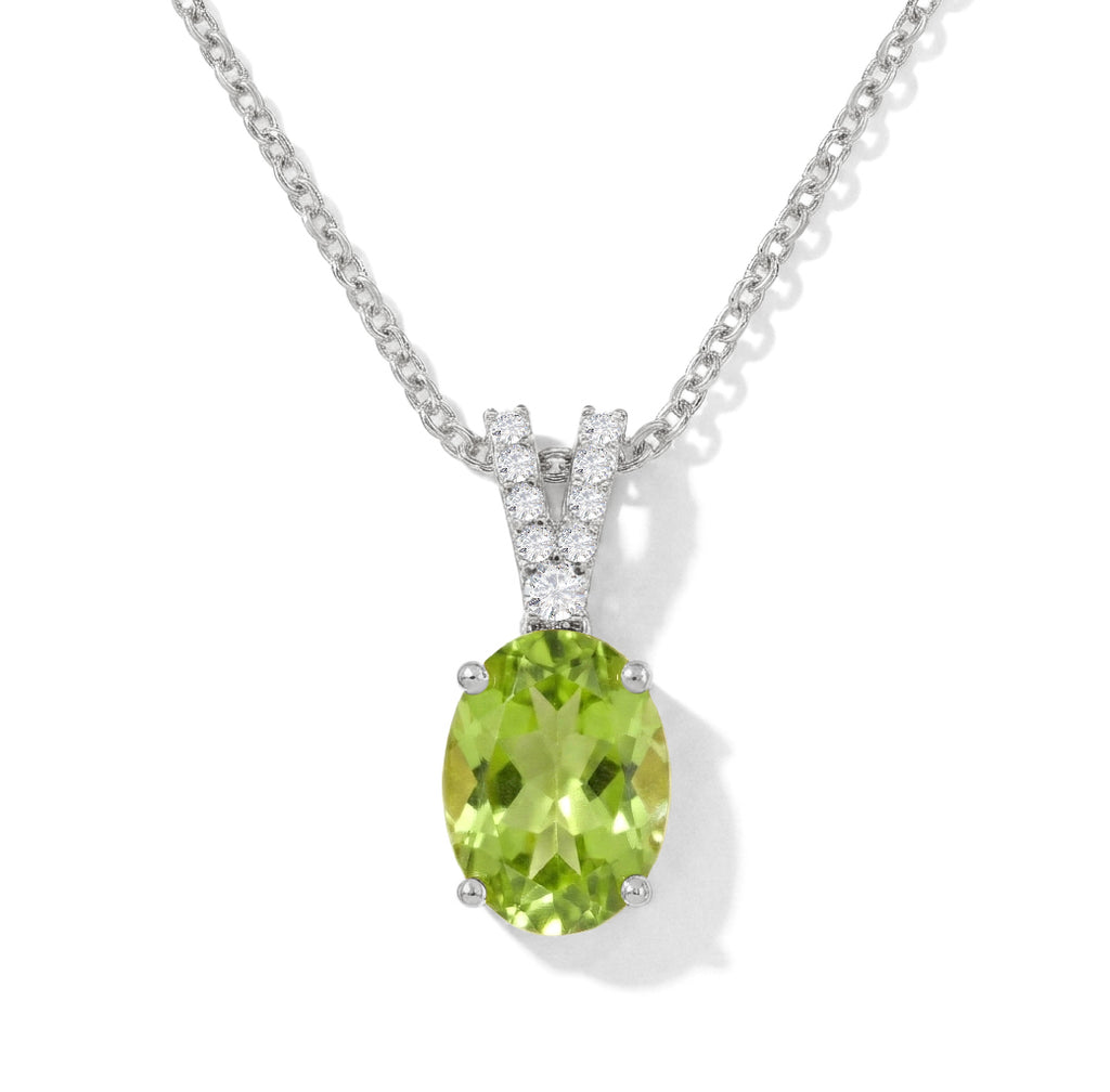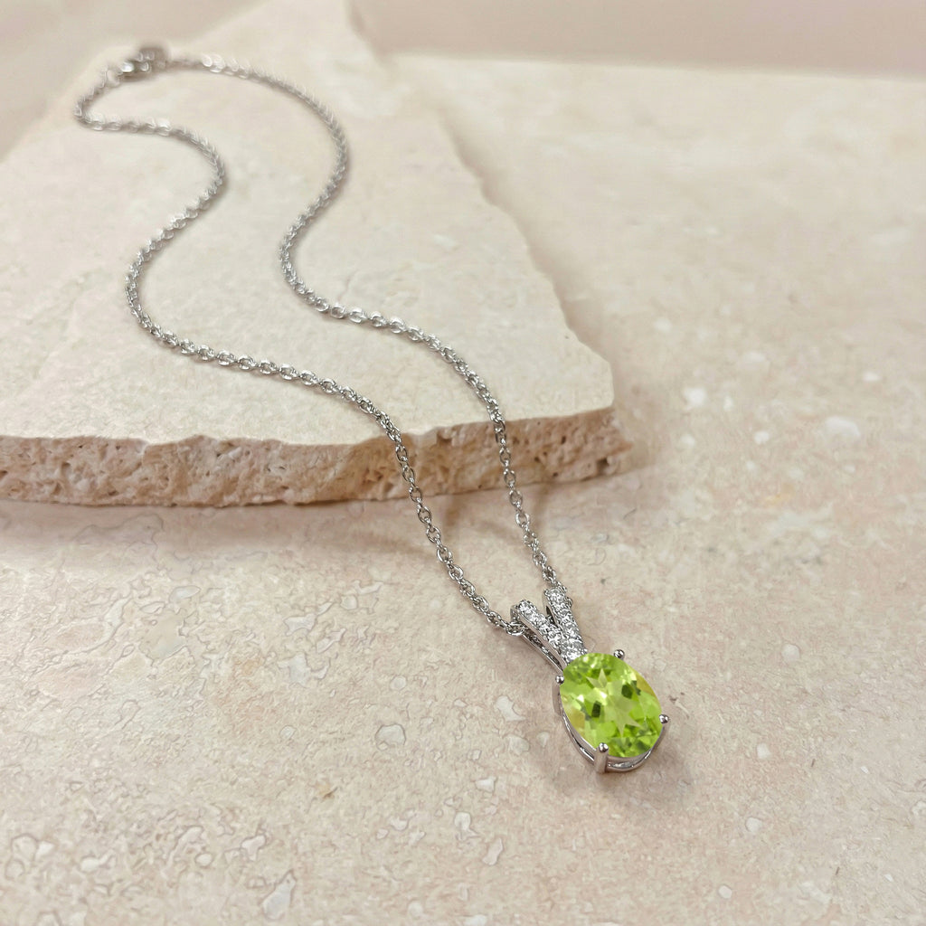 Natural Peridot Solitaire Pendant Necklace in 925 Sterling Silver features a vibrant 1.2ct oval-cut peridot (8x6mm) with brilliant faceted sparkle. Set in a classic solitaire design, the pendant measures 15.81 x 6.84mm and hangs from a 16” + 2” adjustable cable chain secured with a lobster clasp. Crafted from premium sterling silver, this elegant peridot necklace offers fresh green hues, timeless style, and everyday comfort—perfect for gifting or brightening any jewelry collection.