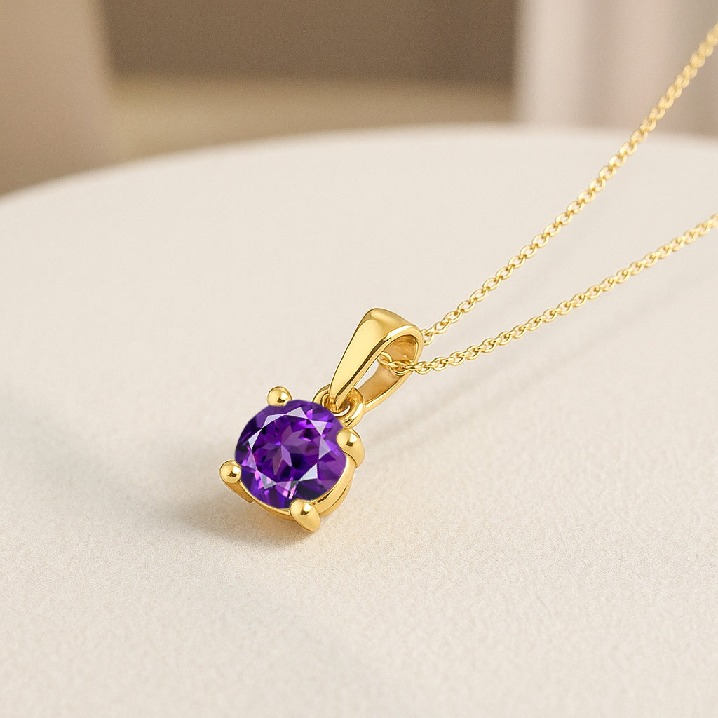 Add timeless elegance to your look with this Amethyst Round Teardrop Pendant Necklace, crafted in high quality 925 sterling silver. The pendant features a faceted 7 mm round Amethyst weighing 1.2 carat, showcasing its signature iridescent glow. Measuring 15.60×7.00 mm, it hangs delicately from a 16″ + 2″ adjustable cable chain for a perfect fit. With a lightweight 1.60 g design, this necklace brings a soft, luminous charm to any outfit ideal for both everyday wear and special occasions.