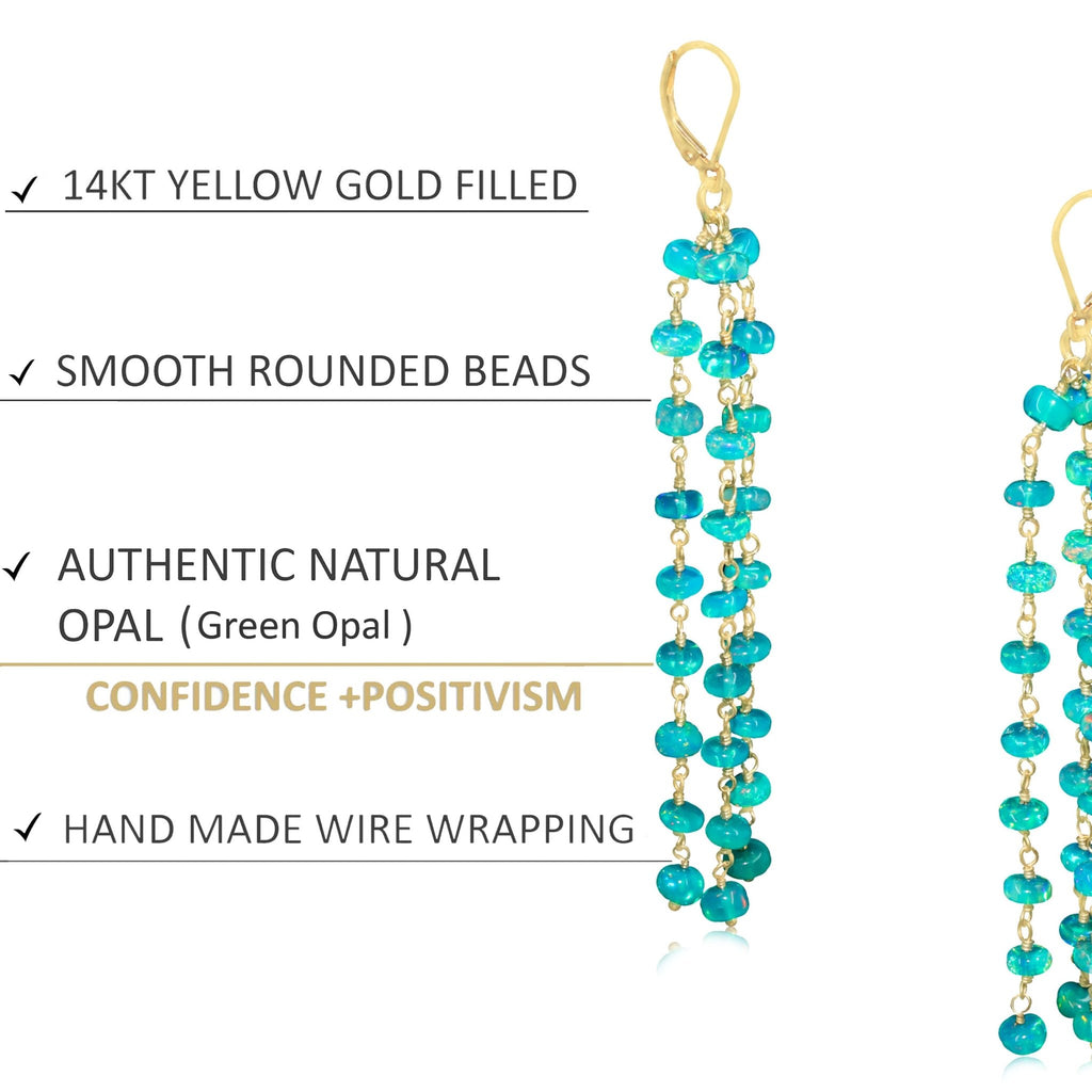 Green OpalThis handmade green Opal 3 Line Dangle Drop Earrings for Women. These beautiful earrings are thoughtfully crafted in 925 sterling silver and finished with a radiant yellow gold fill, offering both luxury and durability in one stunning piece. Featuring vibrant multicolor opal stones, these earrings shimmer with every movement, making them the perfect accessory for both casual and formal occasions. Their lightweight, comfortable design ensures they can be worn all day without any discomfort, while the delicate triple-line drop adds graceful length and sophistication.