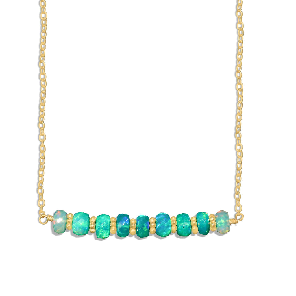 Green OpalNatural Green Opal Beaded Bar Chain Necklace. Handcrafted to perfection, this delicate necklace features genuine 4x5mm rondelle-cut natural Green opal beads, radiating soft hues that effortlessly complement any skin tone. Each bead is carefully strung on a dainty yet durable 925 sterling silver chain, known for its hypoallergenic properties and lasting shine. Designed for women who appreciate understated luxury, this artisan-crafted necklace is more than just a fashion accessory—it’s a meaningful gift for anniversaries, weddings, birthdays, or simply a treat to yourself.