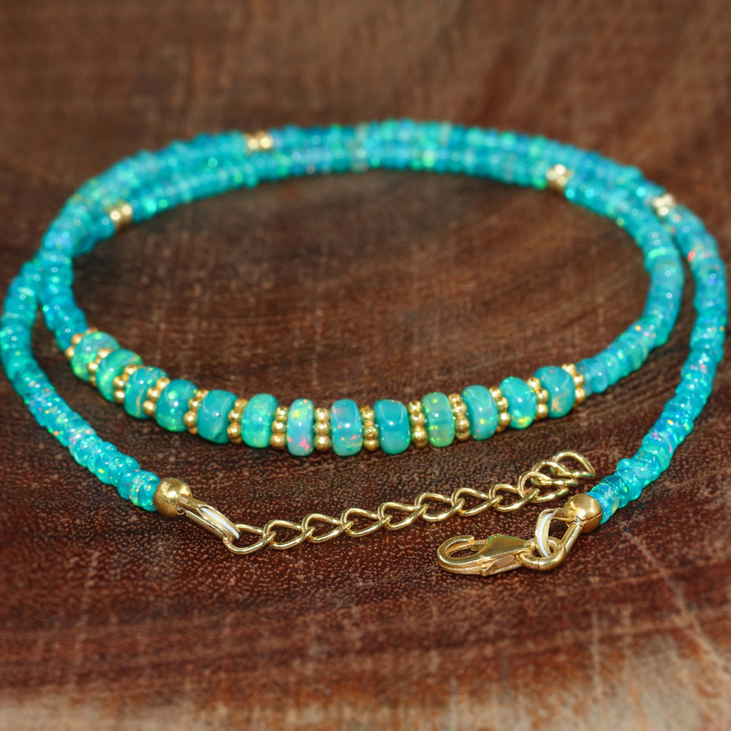 Natural Green Opal Shades Beaded Necklace – Handmade Gemstone Jewelry for Women in 925 Sterling Silver with silver Finish. Indulge in the captivating charm of natural gemstones with the GOODSTONE JEWELS Green Opal Shades Beaded Necklace, a statement piece handcrafted for elegance and individuality. Each necklace features 3x5mm smooth rondelle beads in vivid Green opal-inspired hues, reflecting nature’s artistry in every detail. Meticulously crafted using 925 sterling silver and enriched with a radiant silver finish, this beaded necklace is a perfect balance of durability and luxury. Whether worn solo or layered, it elevates your everyday or evening ensemble with timeless sophistication. This unique piece of handmade jewelry makes an unforgettable gift for her.
