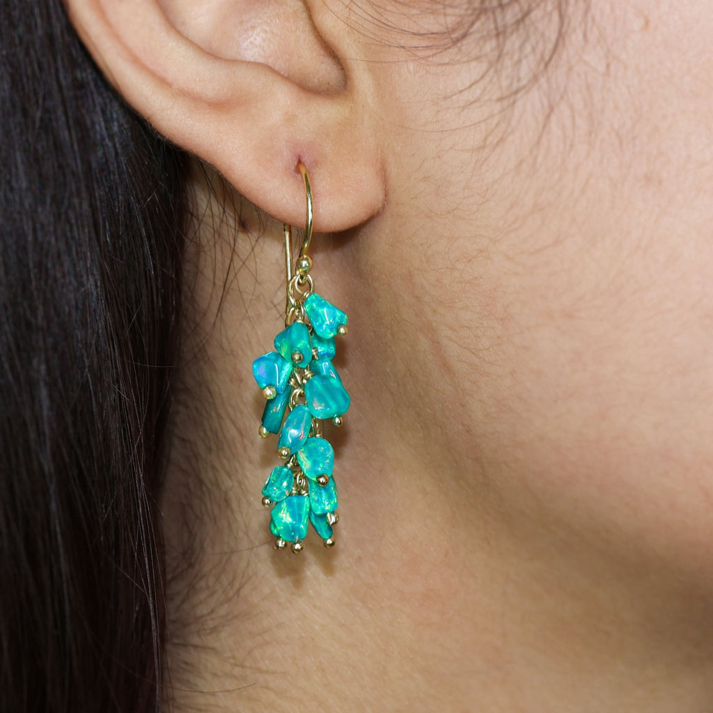 Green OpalNatural Green Opal Bead Cluster Earrings for Women crafted to highlight both timeless style and heartfelt sentiment. Made with genuine green opal stones, these earrings shimmer with natural iridescence, offering a subtle glow that enhances any look—whether you're dressing up or keeping it casual. Each earring is expertly crafted in 925 sterling silver and finished with yellow gold fill for a rich, luxurious shine. This combination ensures not only stunning visual appeal but also long-lasting durability and comfort.