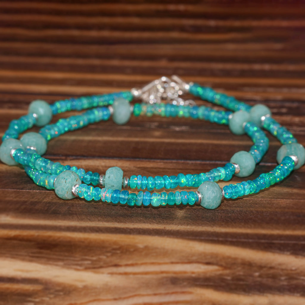 GOODSTONE JEWELS Natural Green Opal and Turquoise Beads Necklace. Handcrafted with love and precision, this stunning necklace features a vibrant blend of natural green opal and turquoise beads in smooth 4x5mm rondelle shapes, offering a unique, earthy elegance that complements any look. Crafted in Premium Sterling Silver, High-quality 925 sterling silver, this necklace combines timeless craftsmanship with modern design. The added 1.5-inch extension chain and secure lobster claw clasp ensure a perfect, adjustable fit for every neckline ideal for layering or wearing as a statement piece.