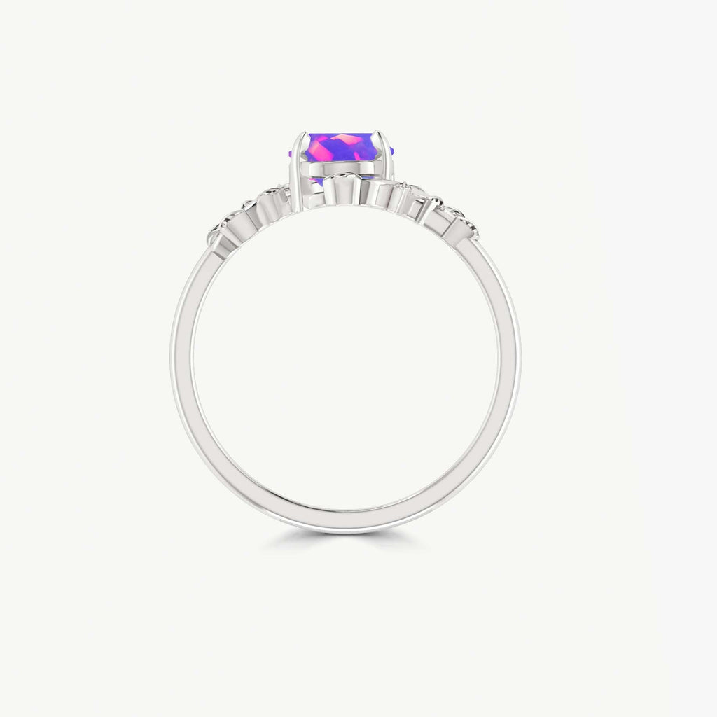 Lavender OpalNatural Black Opal Ring, expertly crafted in 925 Sterling Silver accents. Featuring a genuine 8x6mm oval opal gemstone (0.9 CRT), this ring radiates vibrant fire and natural allure, making it the perfect October birthstone ring or spiritual energy enhancer. Designed with a nature-inspired leaf motif, this elegant piece is ideal for stacking with other rings or wearing solo for a minimalist yet bold statement. The Bypass design suits both everyday wear and special occasions, from weddings to anniversaries. This ring is a thoughtful and romantic gift for your wife, girlfriend, or mother, beautifully combining artisan craftsmanship with emotional significance.