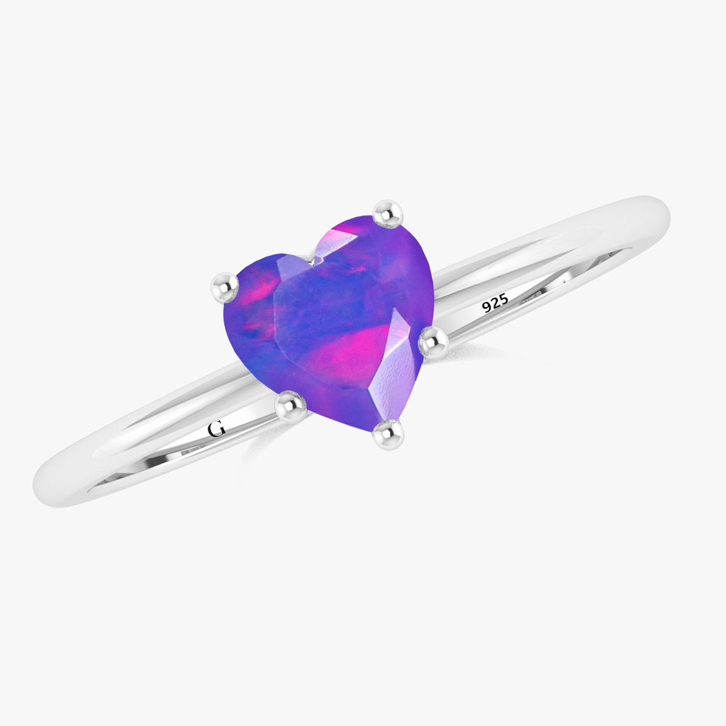 Lavender OpalElevate your jewelry collection with this stunning Natural Lavender Opal Heart Ring, masterfully crafted in 925 sterling silver. At the heart of this minimalist design is a captivating 6mm faceted Lavender Opal, shaped into a delicate heart and weighing approximately 0.8 carats. Its dazzling play of color makes each ring truly one-of-a-kind, reflecting both beauty and individuality. Designed with a sleek and stackable silhouette, this ring can be worn solo for understated elegance or layered with your favorite pieces for a personalized, fashion-forward look. Whether you're dressing up for an event or accenting your everyday outfit, this ring is the perfect finishing touch.