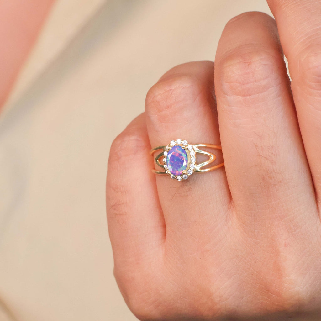 Lavender OpalNatural Lavender Opal Stackable Halo Ring for Women, expertly crafted in 925 Sterling Silver. At the center lies a stunning 7x5 mm oval faceted Lavender opal a gemstone revered for its mystical beauty and protective energy. This ring’s evil eye design is more than just fashionable, it’s a meaningful symbol believed to ward off negativity and bring balance. Made with high-quality sterling silver, this hypoallergenic, tarnish-resistant ring is built to last while offering unmatched comfort. Whether it’s worn as a promise ring, engagement ring, or anniversary gift, this eye-catching piece makes a powerful statement.