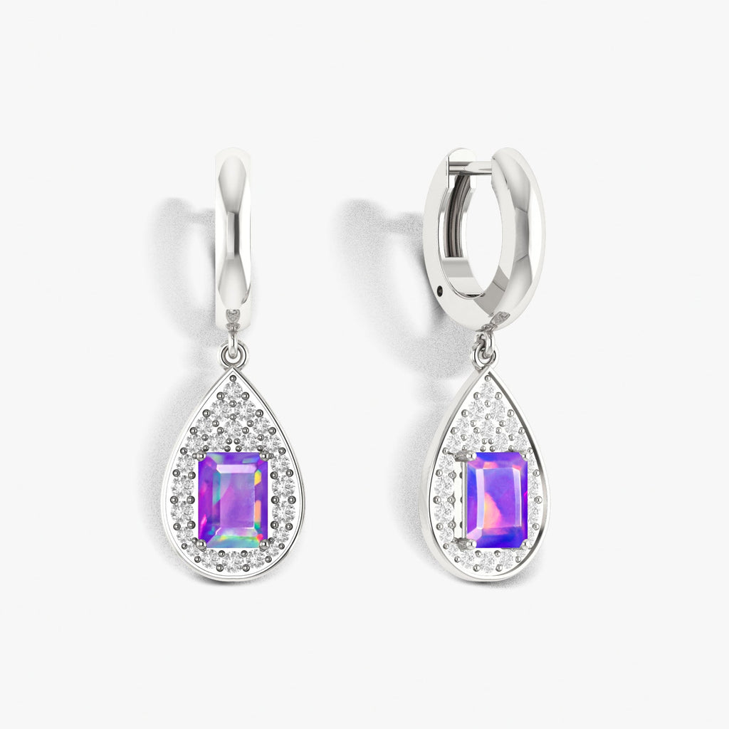 Lavender OpalGOODSTONE JEWELS 925 Sterling Silver Hoop Tear Drop Earrings. Expertly crafted in 925 sterling silver, these exquisite earrings feature a unique blend of natural gemstones Opal for a look that’s as luxurious as it is meaningful. Each earring showcases a striking 7x5 mm octagon-cut gemstone, beautifully framed in a delicate teardrop hoop design. The carefully selected stones bring vibrant color and brilliance, creating a perfect balance of elegance and charm. Whether you're dressing up for a night out or adding flair to your daily look, these earrings promise to turn heads and spark compliments. Designed for both style and comfort, the earrings measure 33.50 x 11.10 mm and feature a secure, lightweight hoop construction (4.2 gm hoop, 1.2 gm face), making them ideal for all-day wear. Their thoughtful design and high-quality craftsmanship make them an unforgettable gift for birthdays, anniversaries, or special occasions perfect for mothers, wives, girlfriends, or yourself.