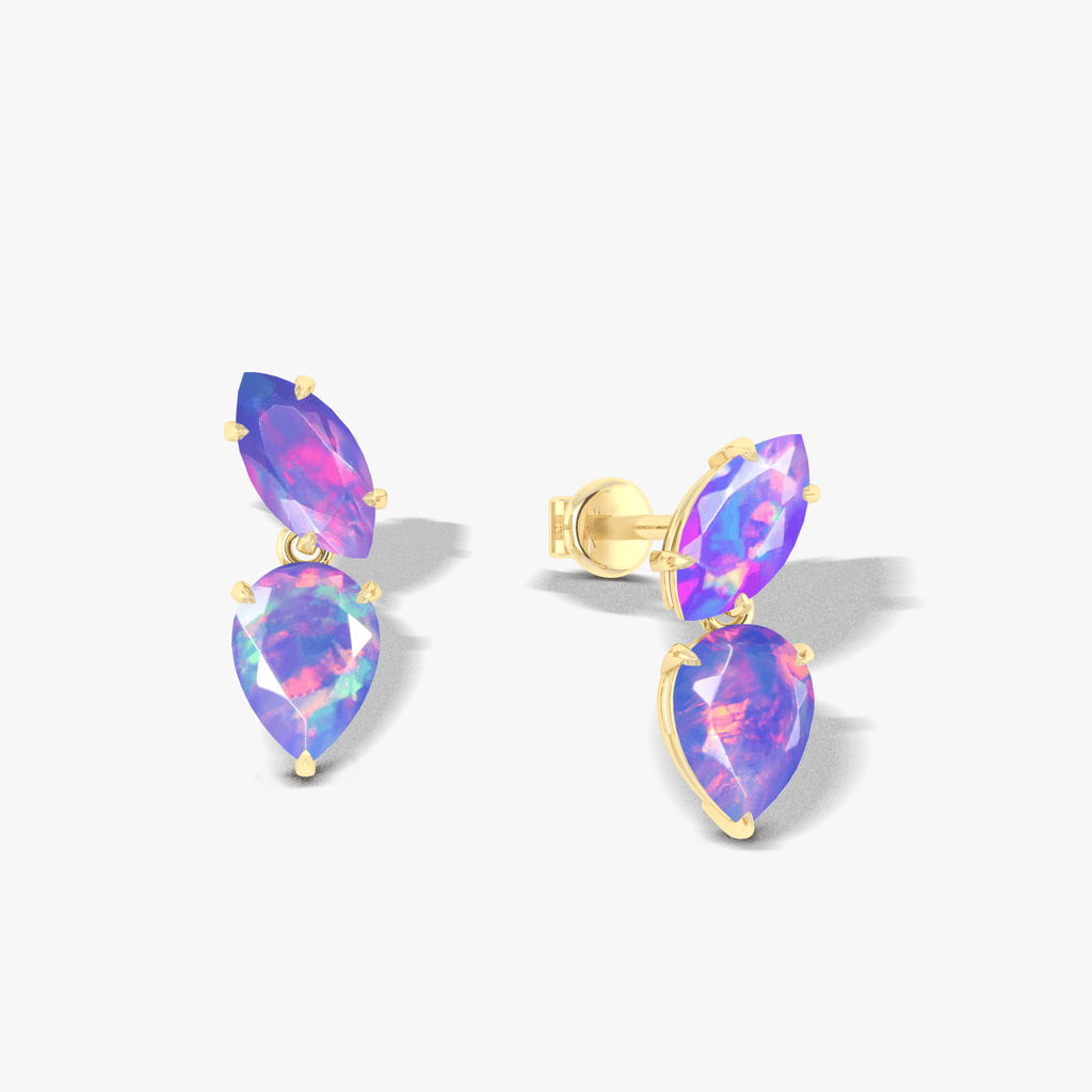 Lavender OpalGOODSTONE JEWELS Natural Gemstone Stud Earrings, featuring a captivating gemstone Opal. These stunning earrings are masterfully crafted from 925 sterling silver making them perfect accessory for any occasion. Each stud showcases a beautiful 8x4 mm marquise and 7x5 mm pear-shaped gemstone, with a total stone weight of 2.4 carats, creating a refined yet radiant design that glimmers with every movement. Measuring 14.5 x 5.30 mm and weighing 2.10 grams, they offer a lightweight and comfortable fit with a secure push-back closure ideal for day-to-night wear. These earrings are more than just accessories, they’re meaningful birthstone jewelry gifts that celebrate love, beauty, and timeless style.