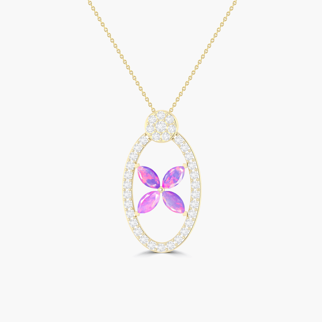 Lavender OpalGOODSTONE JEWELS OX Chain Pendant Necklace, a perfect blend of luxury, craftsmanship, and natural beauty. Meticulously handcrafted in 925 sterling silver for a radiant, tarnish-resistant finish, this pendant necklace showcases four stunning natural Lavender opal gemstones in a unique marquise cut each measuring 5x2.5mm, totaling 1.0 carat. The pendant itself is designed with attention to detail, measuring 24.60 x 13.5 mm, and suspended from a delicate yet durable 16-inch cable chain, complete with a 2-inch extender for adjustable length. With a total weight of just 2.40 grams, it offers comfortable wear all day, making it ideal for both everyday elegance and special occasions. Each opal displays its own unique play-of-color, ensuring no two necklaces are exactly alike adding a deeply personal touch to your accessory collection.