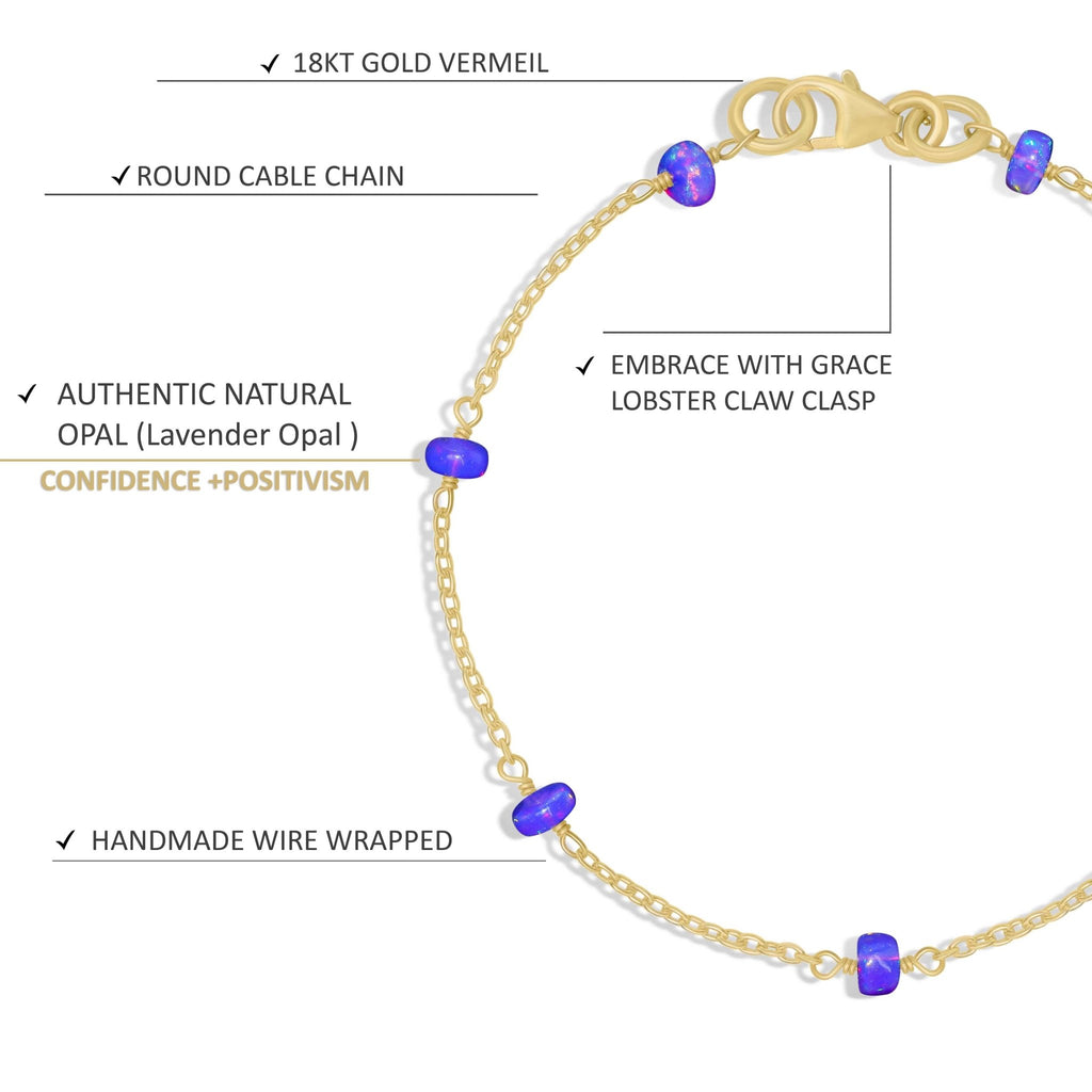Lavender OpalThis beautifully handcrafted Rondelle Minimalist Bead Gemstone Bracelet for Women, featuring a radiant blend of natural lavender Opal Each gemstone is carefully shaped into elegant rondelle beads, offering a vibrant and timeless design that complements any outfit. Made with high-quality Yellow Gold-Filled accents and durable 925 Sterling Silver, this bracelet showcases exquisite artisan craftsmanship. Every piece is handmade, making it as unique and special as the woman who wears it.