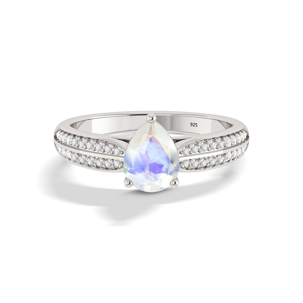MoonstoneNatural Moonstone Solitaire wth Accents Ring, Make a bold Solitaire wth Accents with this exquisite Natural Moonstone Solitaire wth Accents Ring, designed to capture attention and celebrate sophistication. Handcrafted in 925 sterling silver, this ring showcases a radiant 8x6mm oval-shaped Moonstone (1.0 carat) that shimmers with a captivating play of colors. Perfectly sized at 9.30mm and weighing approximately 4.30 grams, this ring combines beauty with comfort, ideal for both everyday wear and special occasions. Whether you're celebrating a wedding, engagement, anniversary, or simply want a stunning birthstone gift for her, this piece is a heartfelt symbol of elegance and love.