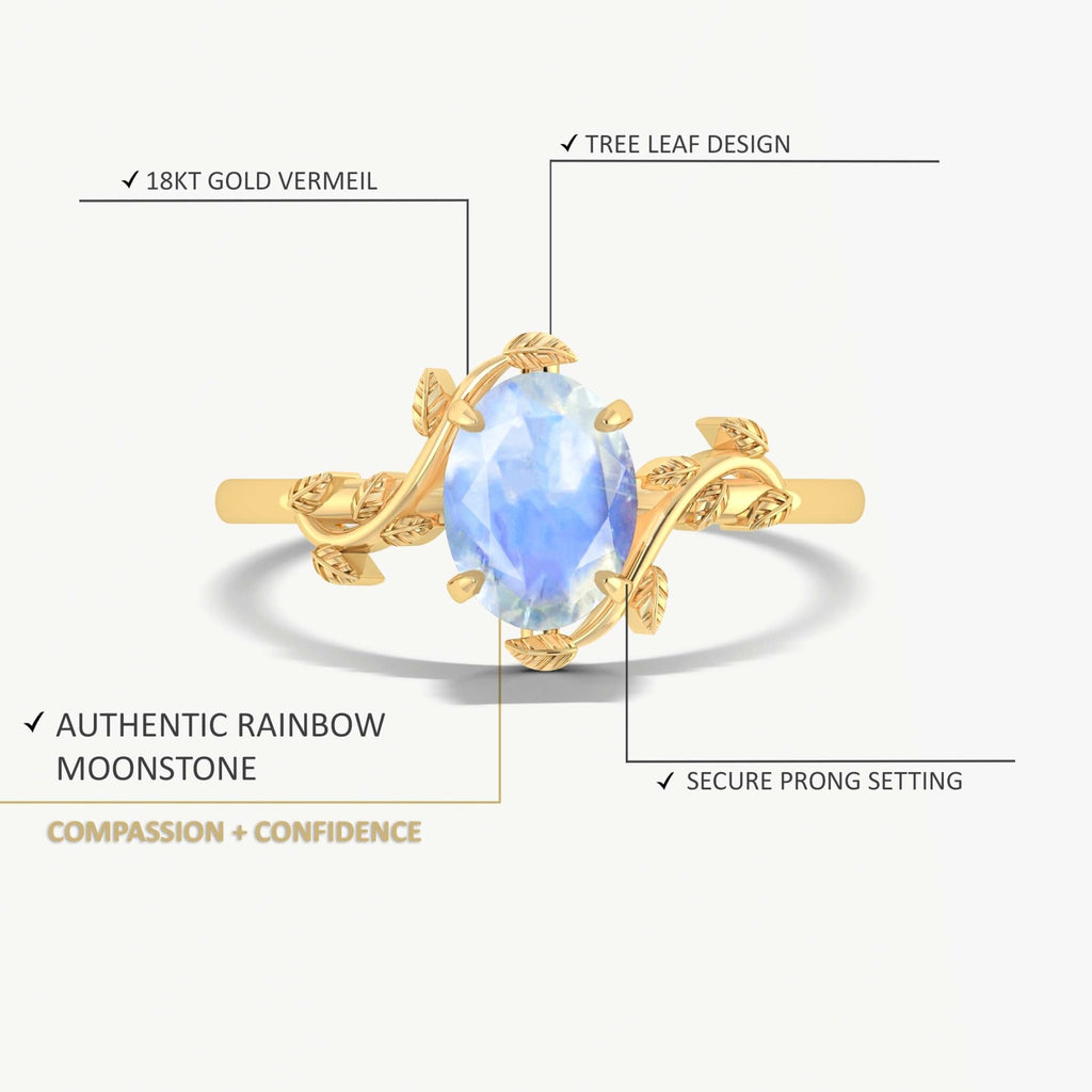 MoonstoneNatural Moonstone Ring, expertly crafted in 925 Sterling Silver accents. Featuring a genuine 8x6mm oval Moonstone gemstone (0.9 CRT), this ring radiates vibrant fire and natural allure, making it the perfect October birthstone ring or spiritual energy enhancer. Designed with a nature-inspired leaf motif, this elegant piece is ideal for stacking with other rings or wearing solo for a minimalist yet bold statement. The Bypass design suits both everyday wear and special occasions, from weddings to anniversaries. This ring is a thoughtful and romantic gift for your wife, girlfriend, or mother, beautifully combining artisan craftsmanship with emotional significance.