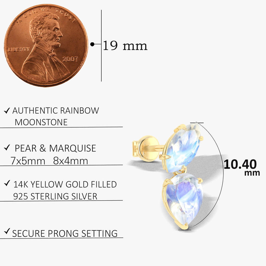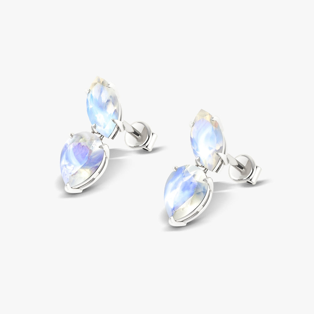 MoonstoneGOODSTONE JEWELS Natural Gemstone Stud Earrings, featuring a captivating gemstone moonstone. These stunning earrings are masterfully crafted from 925 sterling silver making them perfect accessory for any occasion. Each stud showcases a beautiful 8x4 mm marquise and 7x5 mm pear-shaped gemstone, with a total stone weight of 2.4 carats, creating a refined yet radiant design that glimmers with every movement. Measuring 14.5 x 5.30 mm and weighing 2.10 grams, they offer a lightweight and comfortable fit with a secure push-back closure ideal for day-to-night wear. These earrings are more than just accessories, they’re meaningful birthstone jewelry gifts that celebrate love, beauty, and timeless style.