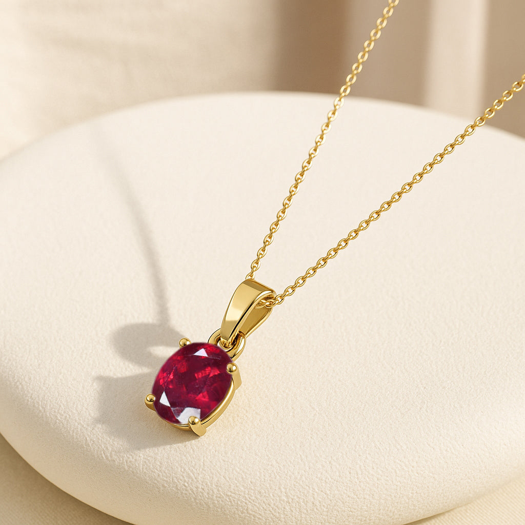 RubyIlluminate your look with this Ruby Oval Stone Pendant Necklace, crafted in premium 925 sterling silver. The pendant features a mesmerizing 7×9 mm oval-cut ruby weighing 1.40 carat, known for its soft glow and ethereal charm. Measuring 17.70×7.00 mm, it hangs gracefully from a 16″ + 2″ adjustable cable chain. With an approximate weight of 1.60 g, this lightweight yet elegant necklace adds a touch of serenity and sophistication to any jewelry collection.