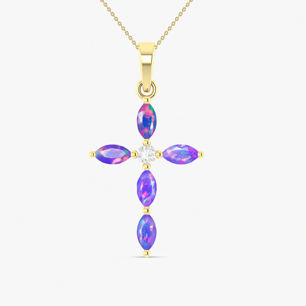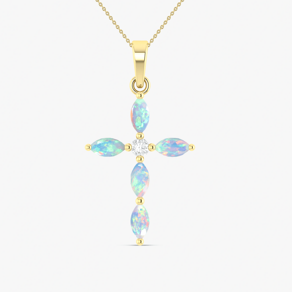 OpalCrafted from natural multi-fire opal, this marquise-shaped gemstone pendant necklace is a unique and striking addition to any jewelry collection. With its fiery hues and elegant shape, it adds a touch of sophistication and style to any outfit. Hand-selected for quality and beauty, this pendant is a must-have for gemstone enthusiasts.