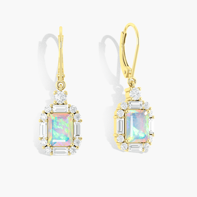 Natural Opal Octagon Gemstone Drop and Drop Earring