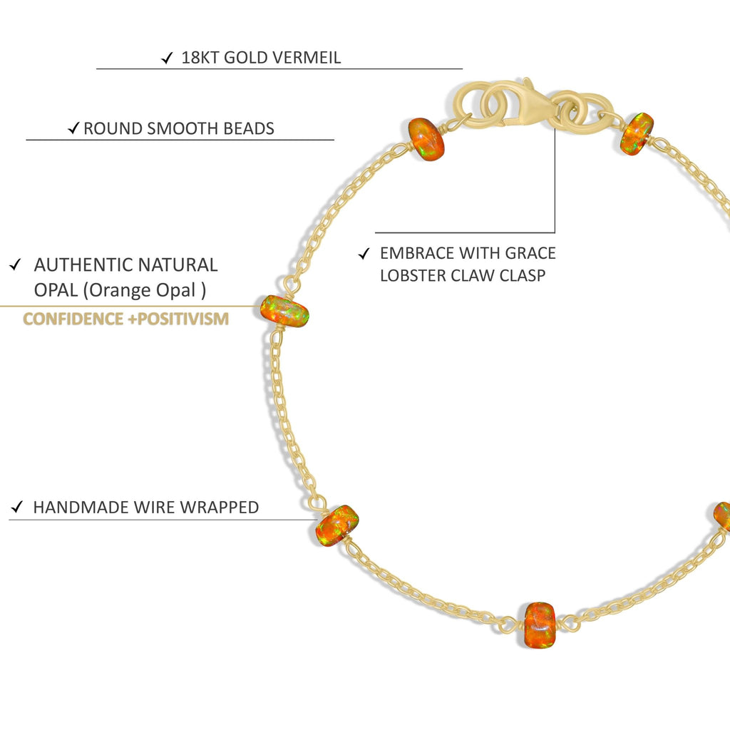 Orange OpalThis beautifully handcrafted Rondelle Minimalist Bead Gemstone Bracelet for Women, featuring a radiant blend of natural orange Opal Each gemstone is carefully shaped into elegant rondelle beads, offering a vibrant and timeless design that complements any outfit. Made with high-quality Yellow Gold-Filled accents and durable 925 Sterling Silver, this bracelet showcases exquisite artisan craftsmanship. Every piece is handmade, making it as unique and special as the woman who wears it.