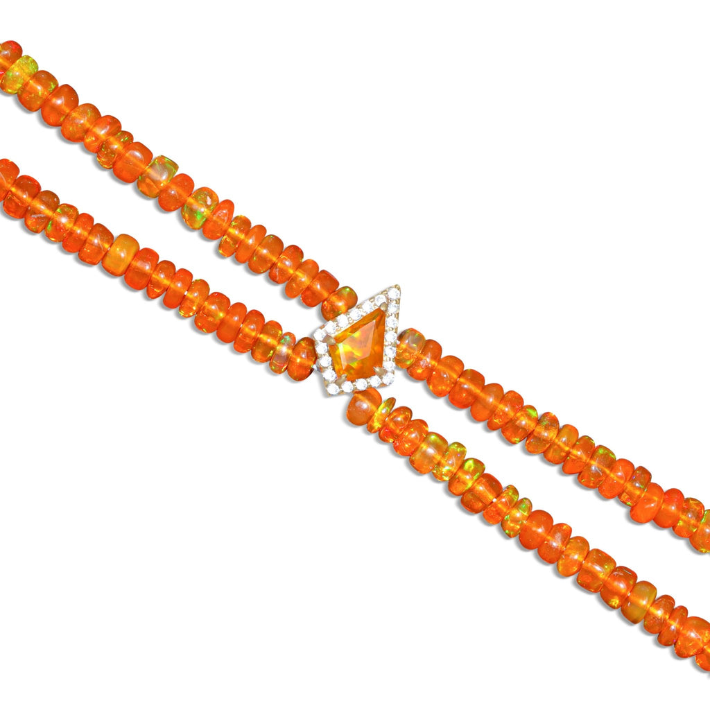 Orange OpalAdd a splash of elegance and color to your jewelry collection with this handcrafted two-strand bracelet featuring natural Orange Opal beads. Each smooth 3x4mm rondelle gemstone shimmers in oceanic hues, delicately strung and accented with 5x7mm kite-shaped charms for a touch of playful sophistication.