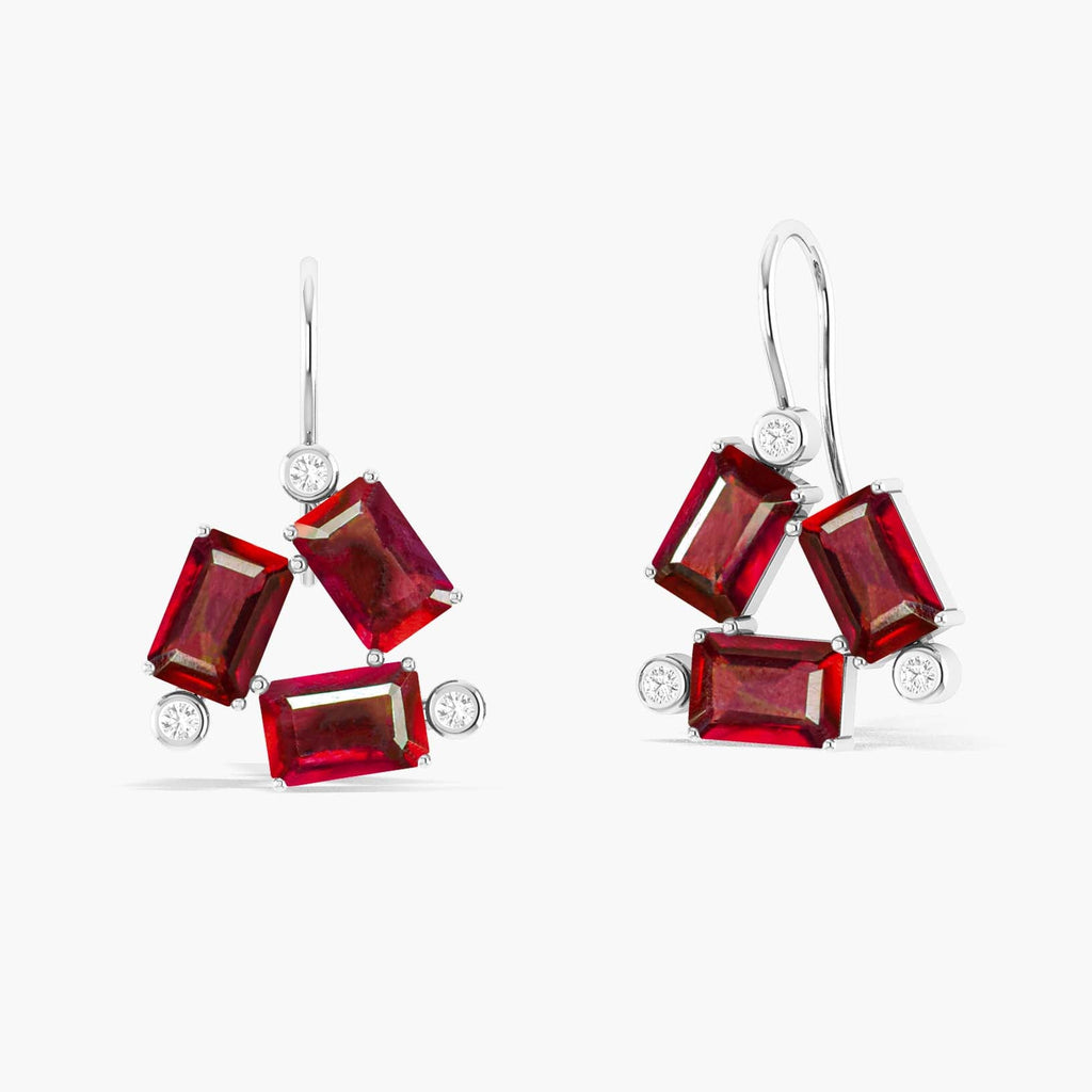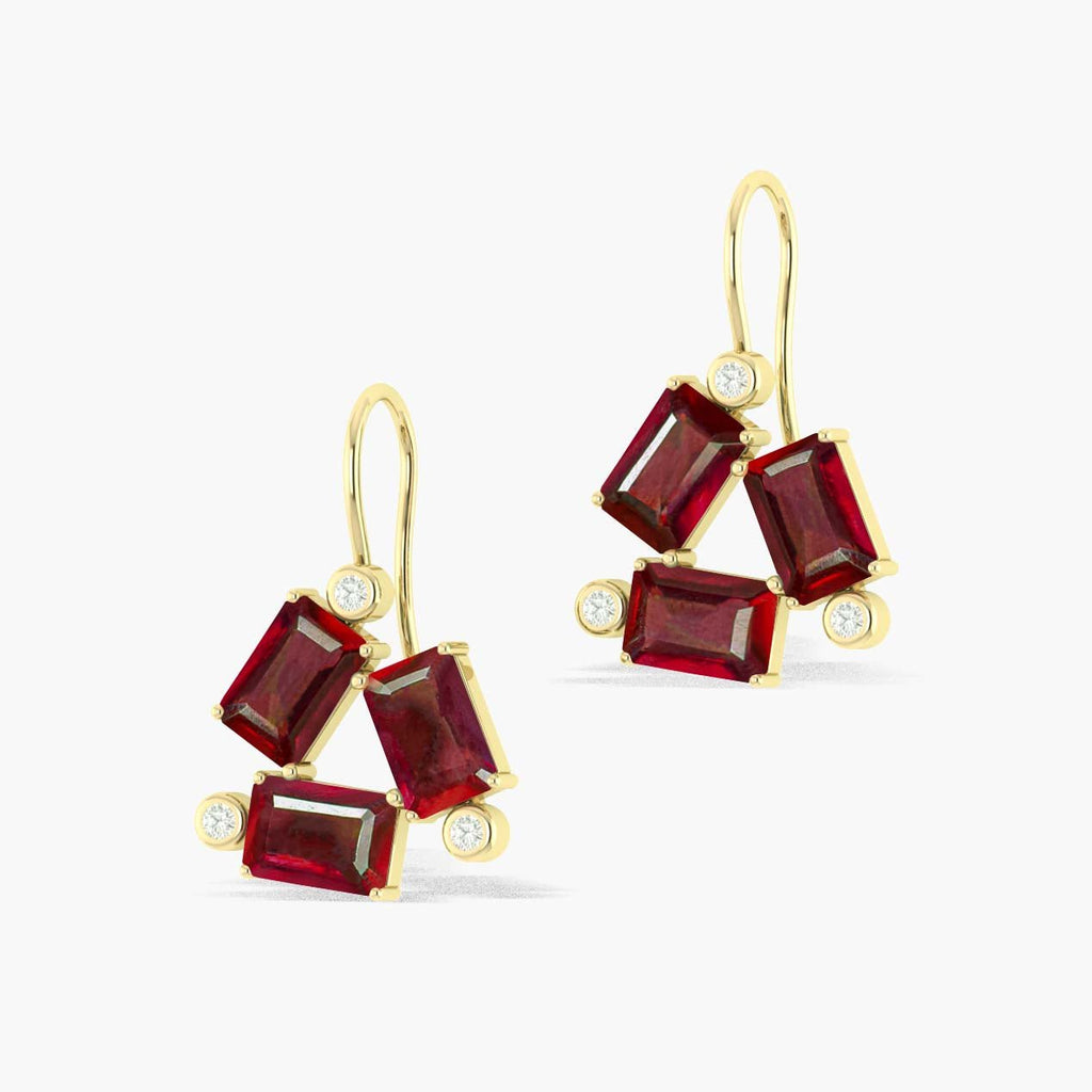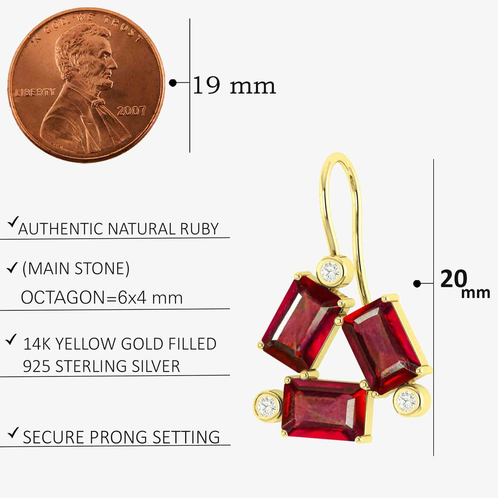 RubyIntroducing the Red Ruby Dangle Earring! This beautiful earring features a octagon gemstone of stunning rubies. Wear it to add a touch of elegance and love to any outfit. Perfect for special occasions or everyday wear, this earring is sure to dazzle and delight.