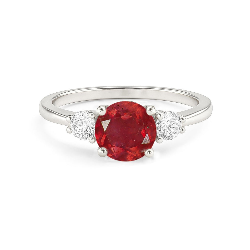 RubyCelebrate timeless elegance and meaningful symbolism with this exquisite Trilogy Ring, expertly crafted in 925 Sterling Silver with Yellow Gold Plating. At its heart lies a 6mm round-cut natural Ruby, shimmering with its signature play of color and weighing approximately 1 carat. Flanked on either side by brilliant White Cubic Zirconia stones, the trio of gems represents the past, present, and future, making this ring a perfect token of love, memory, and promise, Each gemstone is faceted cut to maximize brilliance and fire, creating a captivating visual contrast between the mystic allure of the Ruby and the icy sparkle of Cubic Zirconia. With a metal weight of 2.60 grams, this piece is both lightweight and durable, making it suitable for everyday wear or special occasions.