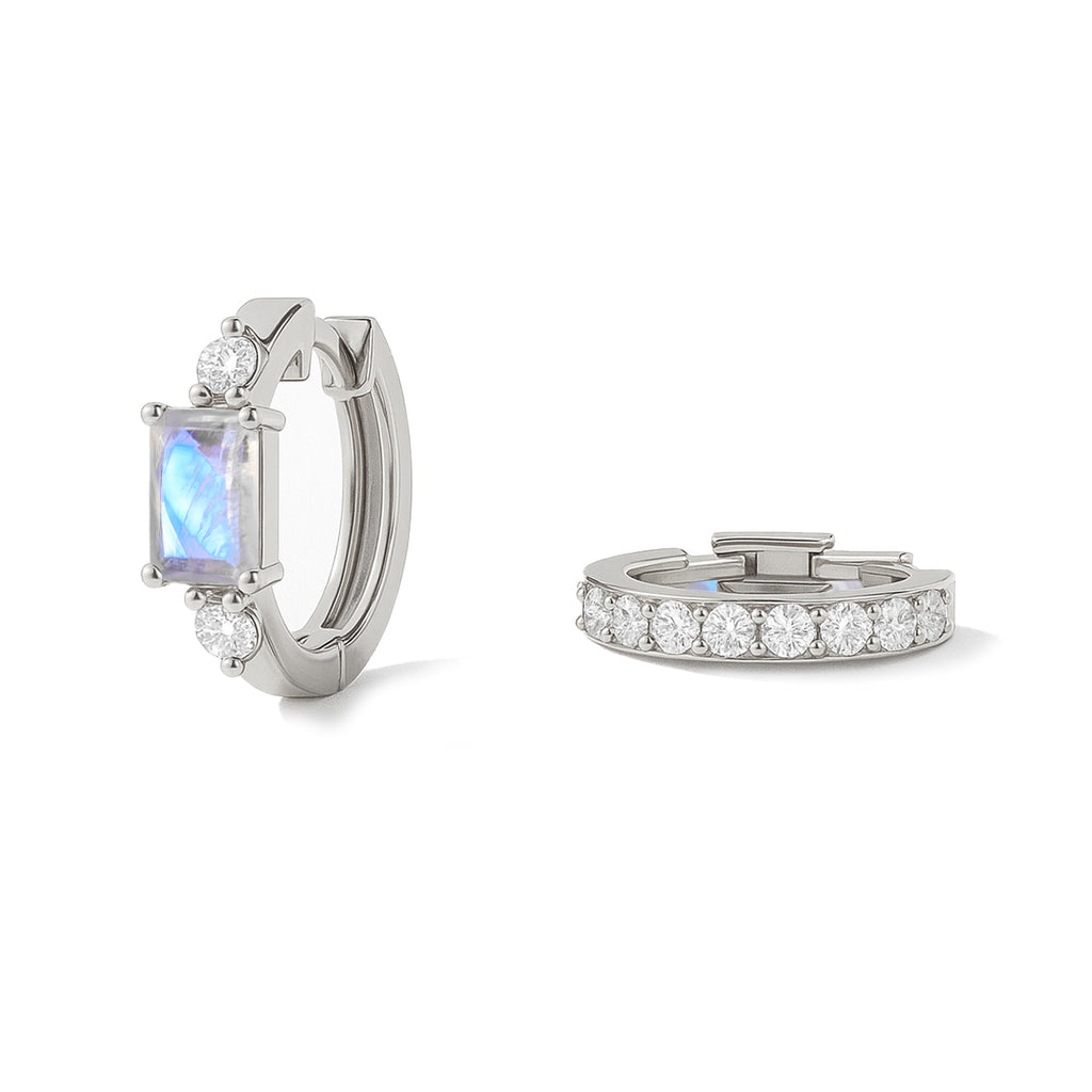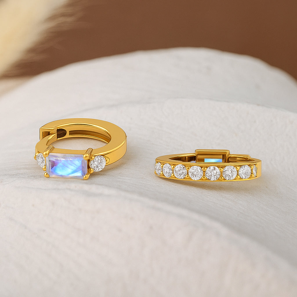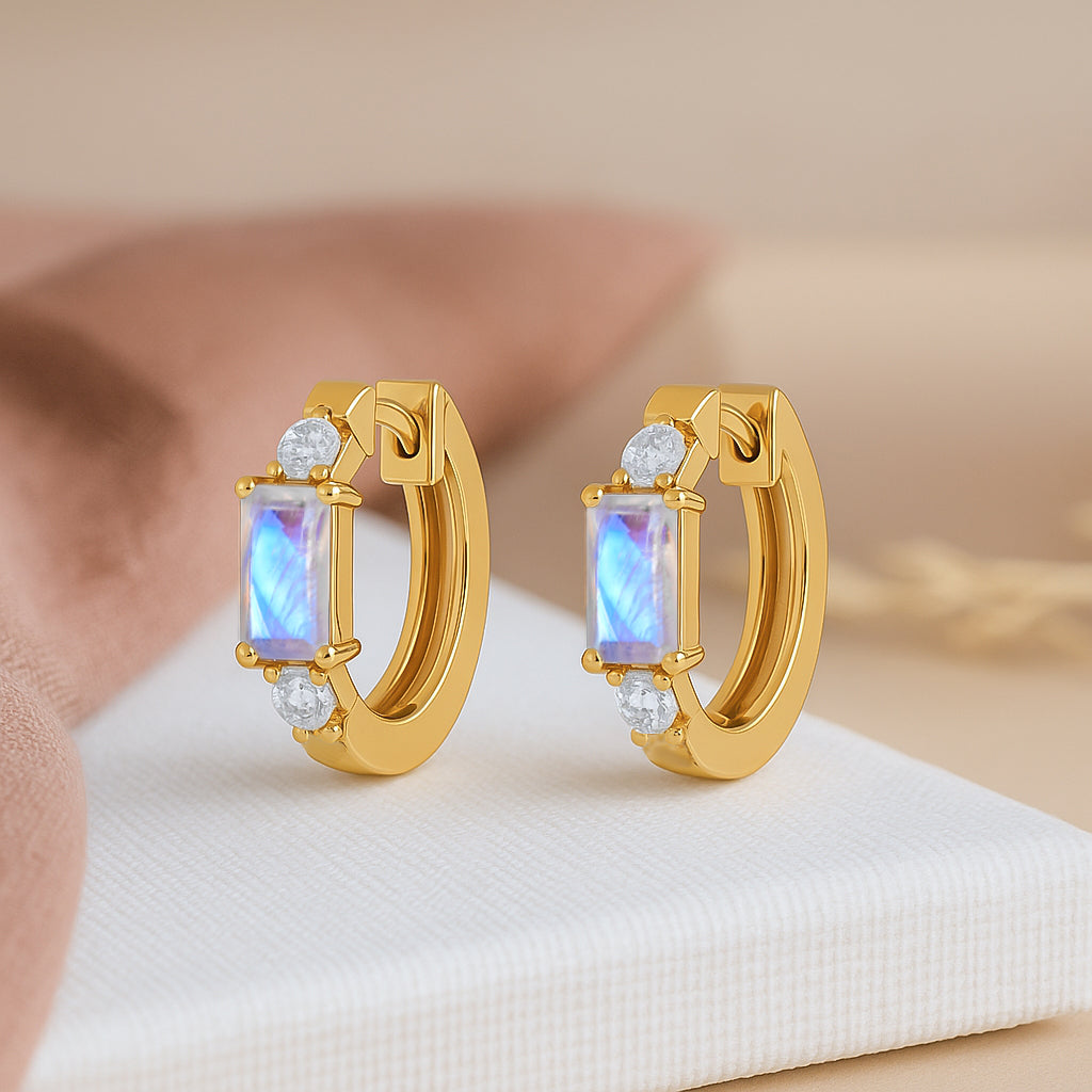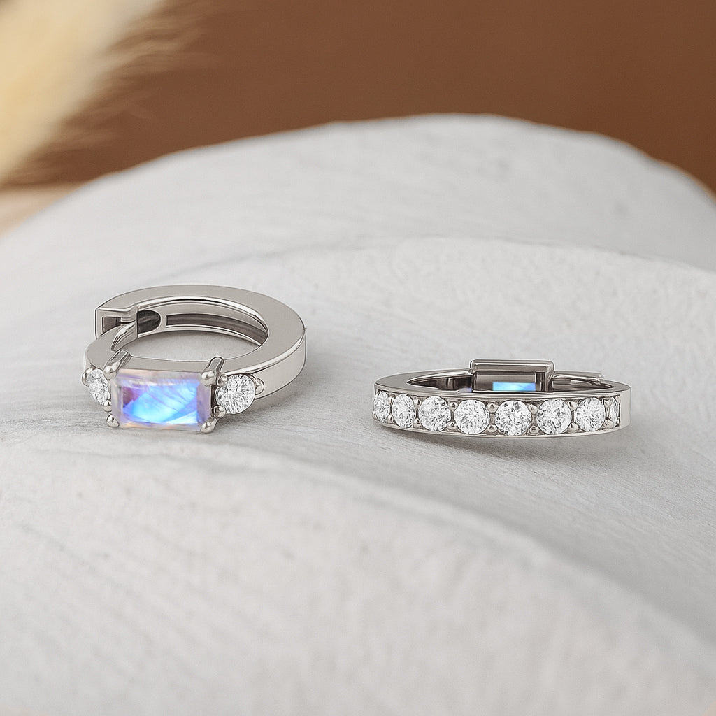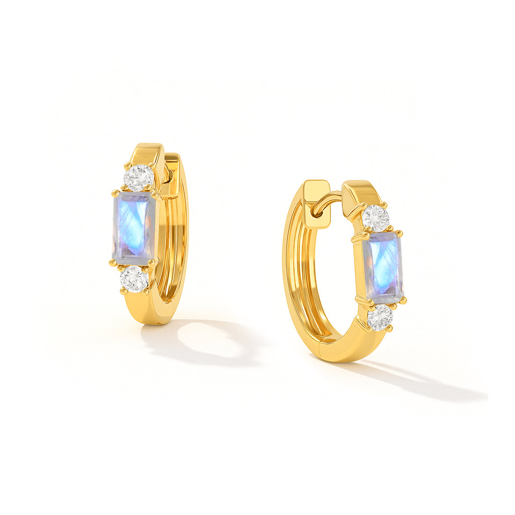 MoonstoneElevate your style with these elegant Baguette Stone Hoop Earrings, crafted in premium 925 Sterling Silver. Each earring features natural moonstone baguette stones measuring 5x3 mm, offering a vibrant pop of color and refined sparkle. The hoops measure 14.20×10.00 mm and weigh 2.95 g, making them lightweight yet luxurious for all-day wear. With a total gemstone weight of 0.80 carat, these moonstone hoops bring timeless charm and a sophisticated finish to any jewelry collection.