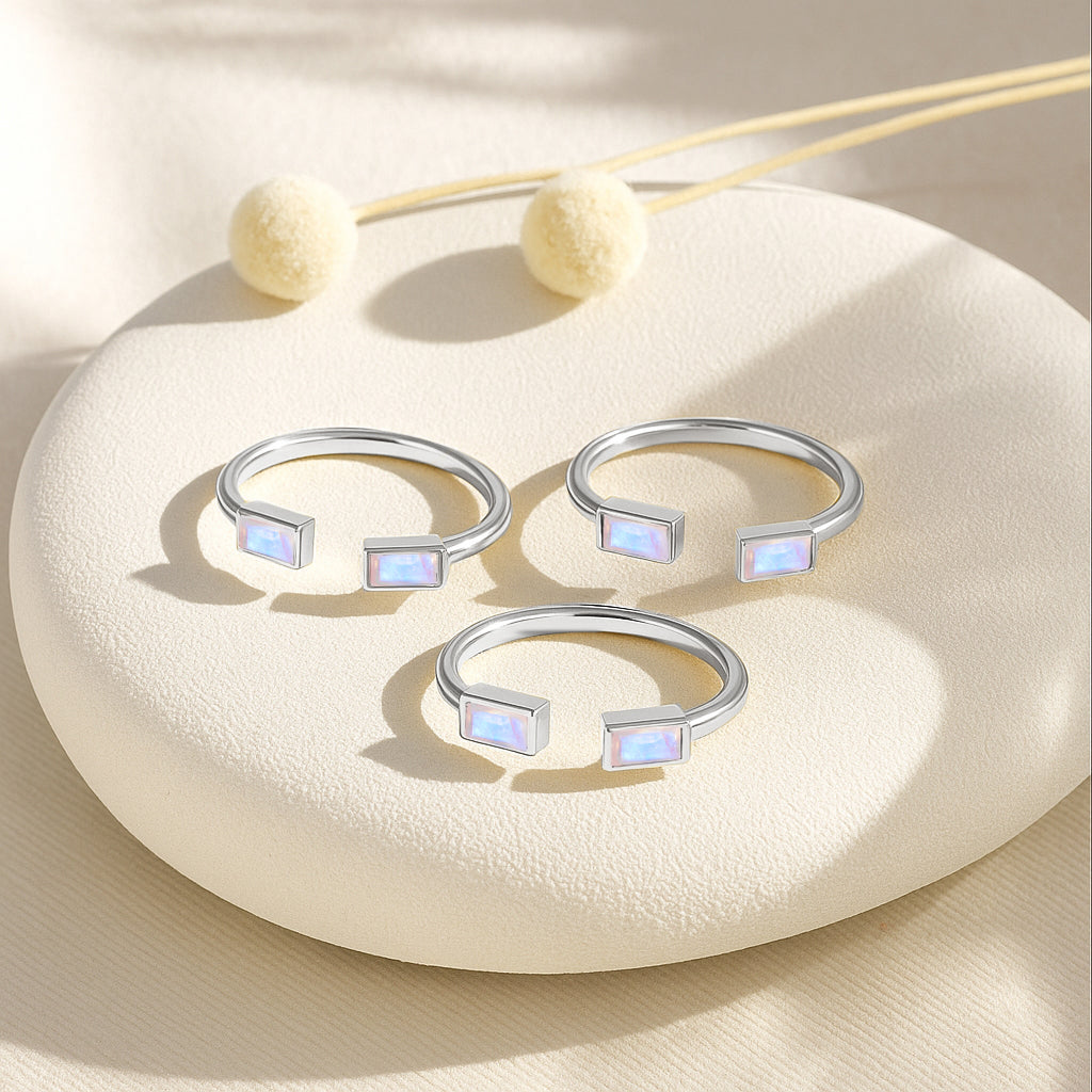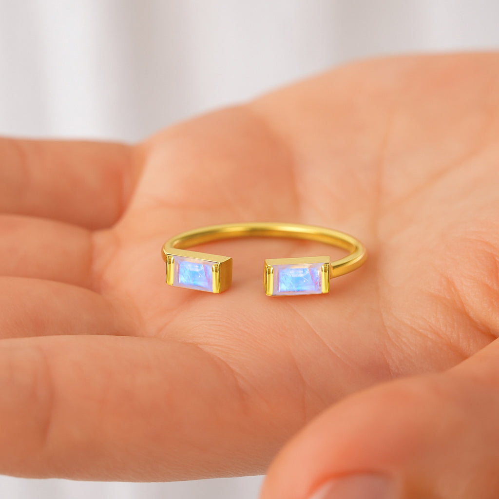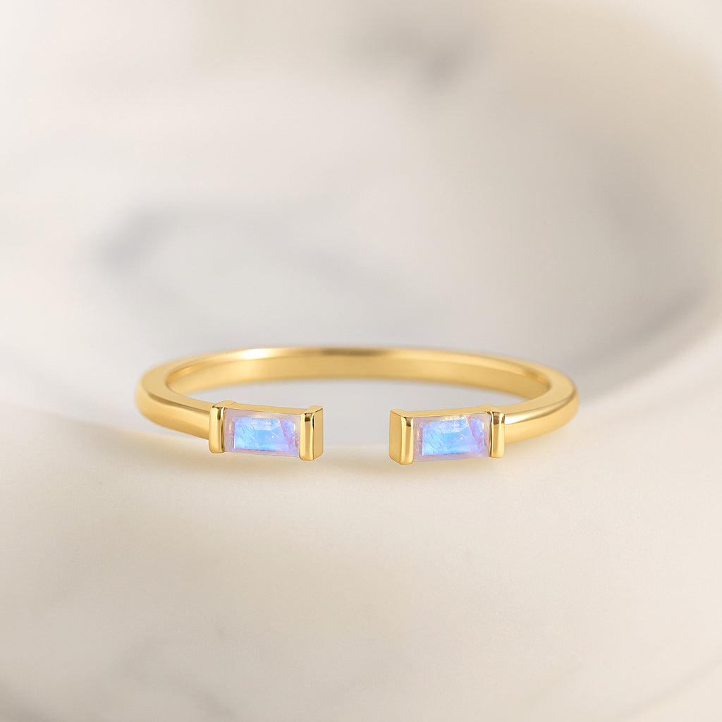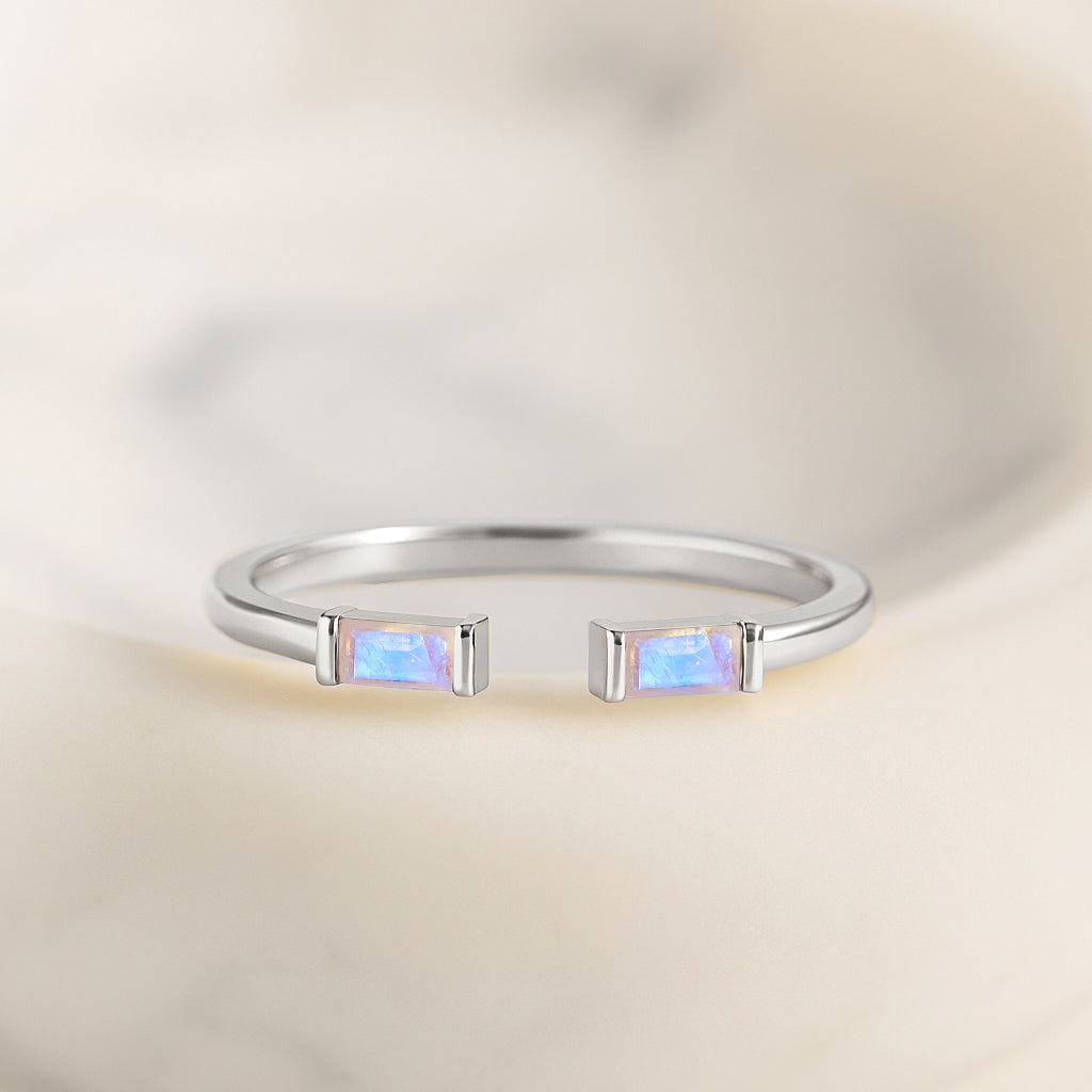 MoonstoneElevate your everyday style with this elegant Baguette Stone Open Ring, crafted in high quality 925 sterling silver. The design features a natural moonstone baguette stone measuring 5x2 mm, offering a vivid pop of red and a sleek modern silhouette. With a total gemstone weight of 0.80 carat and an approximate ring weight of 1.75 g, it delivers both comfort and luxury. The open-band style adds a contemporary touch, making it a perfect statement piece for any jewelry collection.