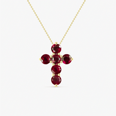 Introducing the Ruby Cross Pendant! This beautiful necklace features six round gemstone of stunning Ruby making a cross. Wear it to add a touch of elegance and love to any outfit. Perfect for special occasions or everyday wear, this pendant is sure to dazzle and delight.