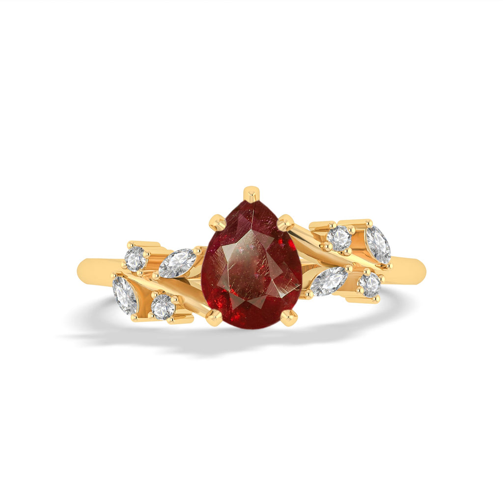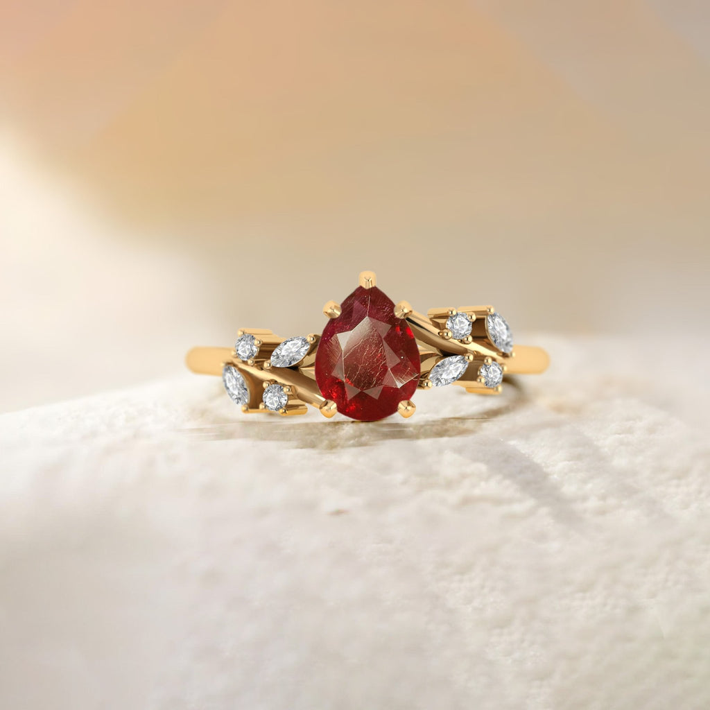 RubyAdd a touch of natural elegance to your jewelry collection with our Natural Ruby Leaf Ring, expertly crafted in genuine 925 sterling silver for a luxurious, lasting shine. At the heart of this breathtaking piece is a dazzling 8x6 mm pear-shaped Ruby, weighing approximately 1.0 carat, known for its mesmerizing play of colors and iridescent beauty. Each ring is a unique statement, embodying sophistication and style. The intricate leaf-inspired design wraps gracefully around the finger, offering a comfortable yet bold statement ring perfect for everyday elegance or special occasions.