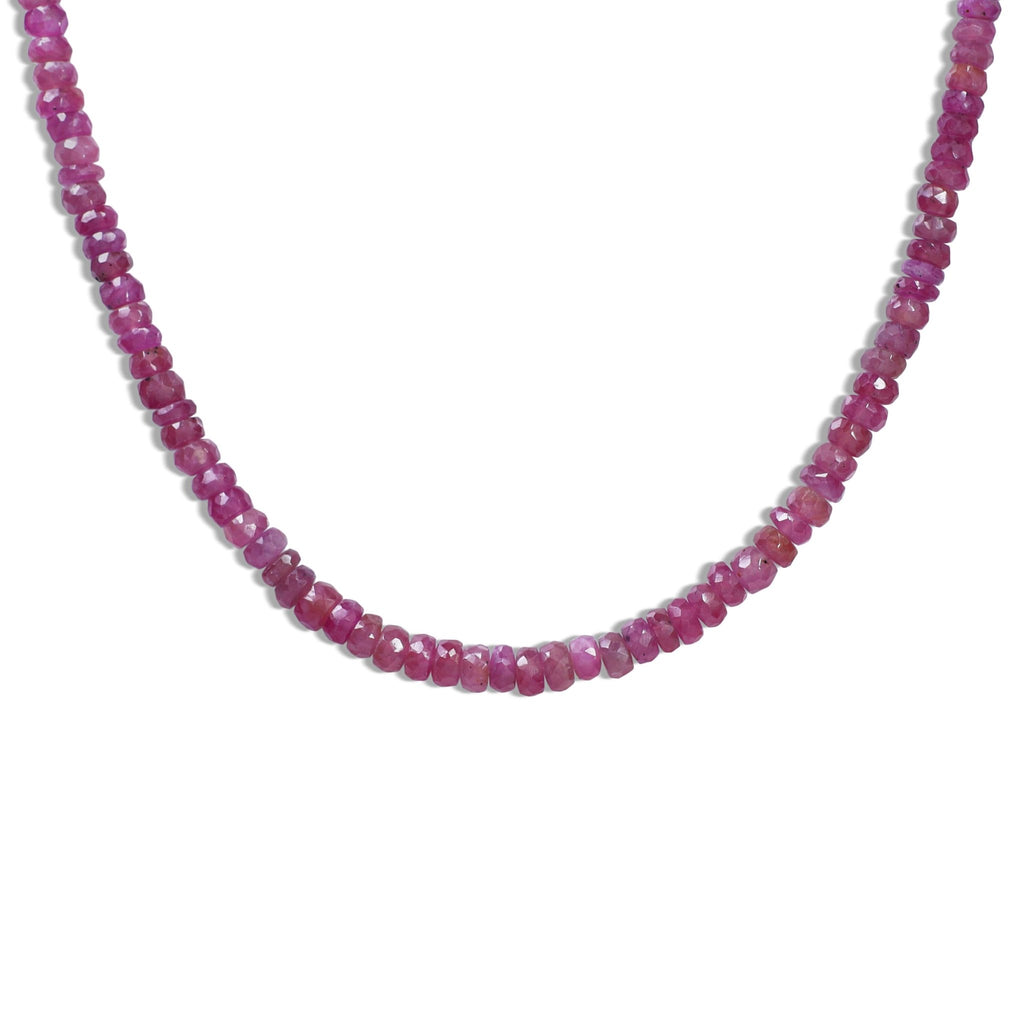RubyGOODSTONE JEWELS Natural Ruby Necklace : Add a touch of natural beauty and sophistication to your jewelry collection with the GOODSTONE JEWELS Natural Ruby Beaded Necklace. Featuring genuine 3x4mm moonstone smooth rondelle beads, this stunning piece is a celebration of earthy elegance and artisan craftsmanship. Crafted with care, this necklace is set in 925 sterling silver and finished in radiant Silver, offering a luxurious shine that complements the soothing tones of the moonstones. Whether you're treating yourself or searching for a thoughtful gift, this ruby necklace makes a meaningful birthstone jewelry gift for women.
